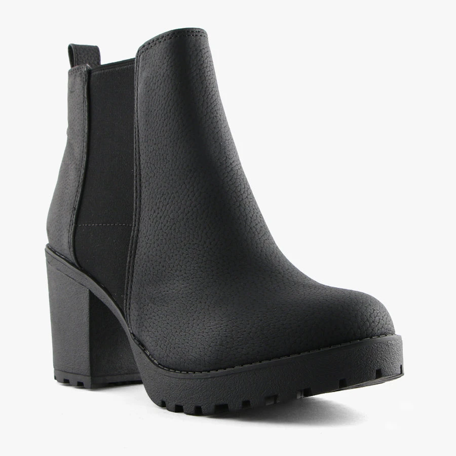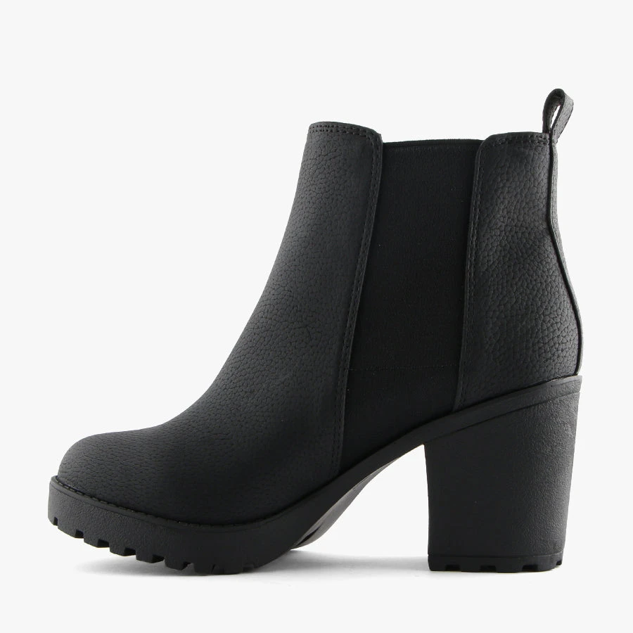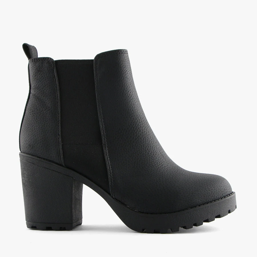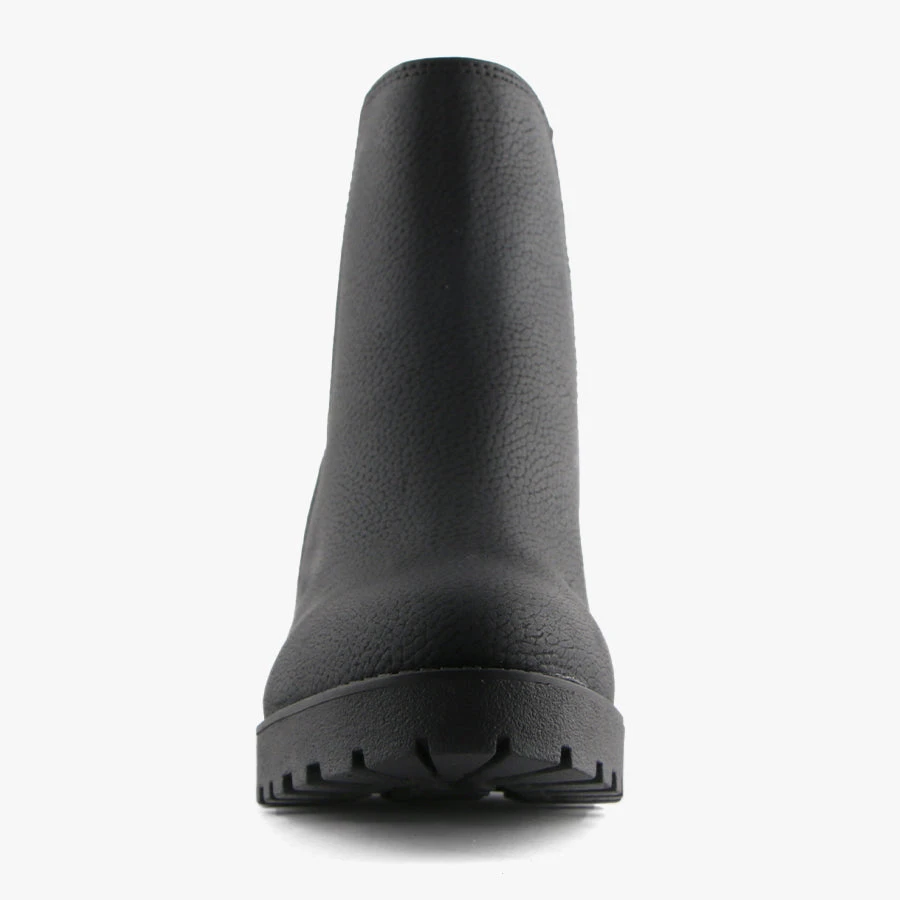 Acting by London Rebel is a women’s ankle boot featuring elastic panels at the sides and a smooth upper with an almond shaped toe on a block heel.