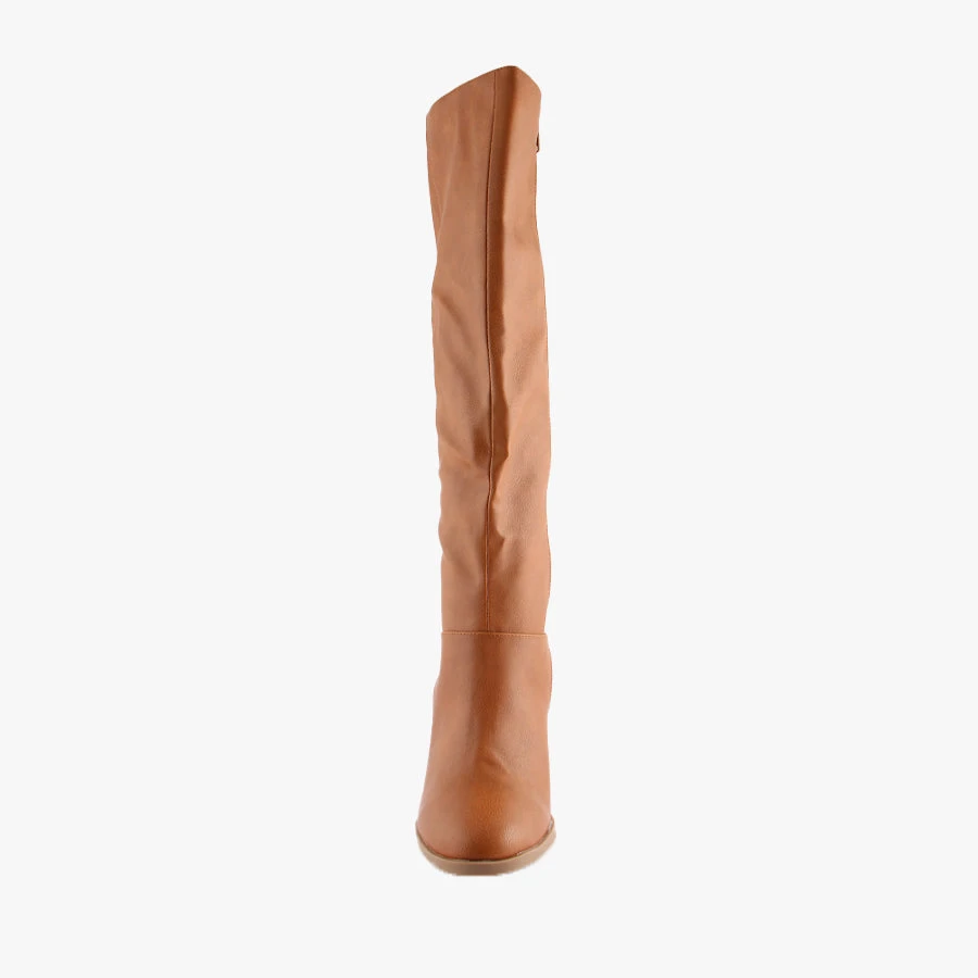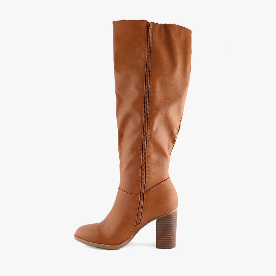 Affair Tan by Pied a Terre is a women’s knee high boot that features a stacked block heel and a full length zip for easy wear.