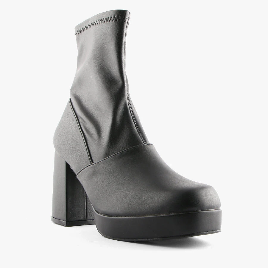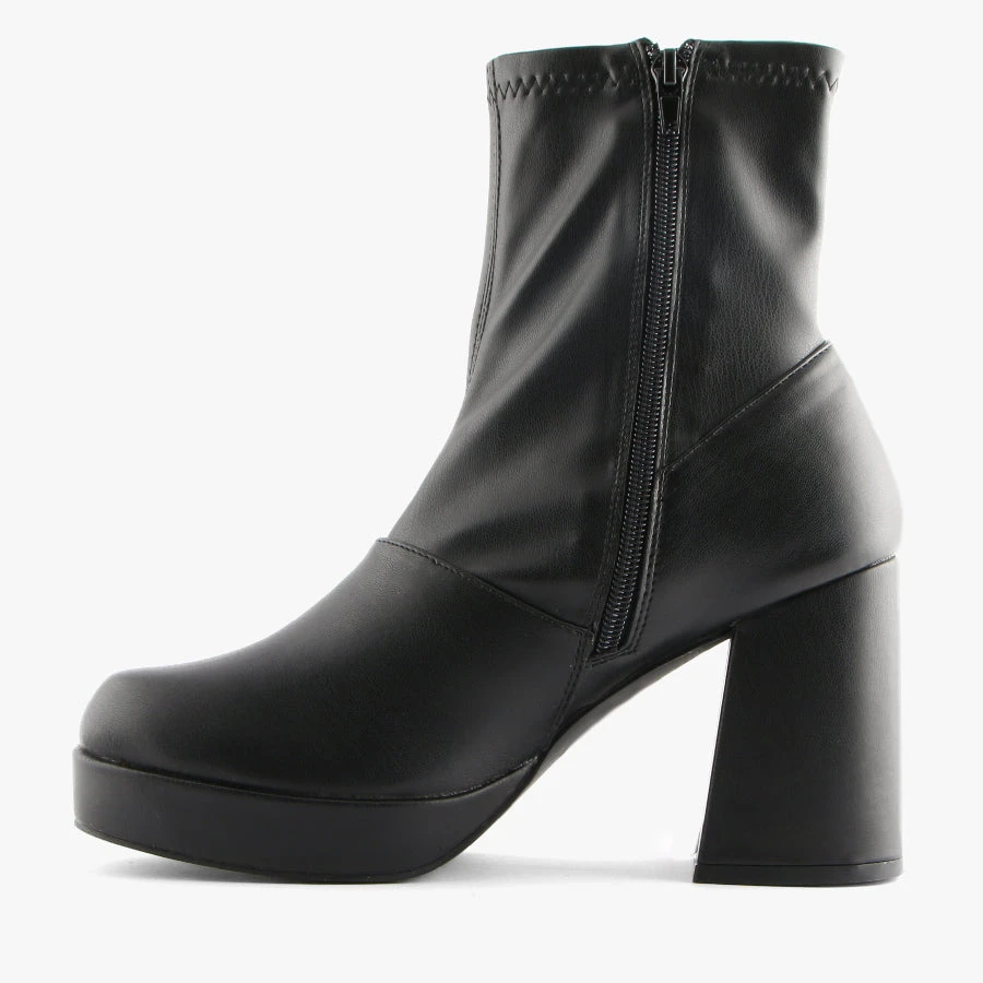 Make a statement in Avril by Verali. This dress boot features a flared block heel, square toe design and a stretch fabric upper that will fit comfortably around the leg.