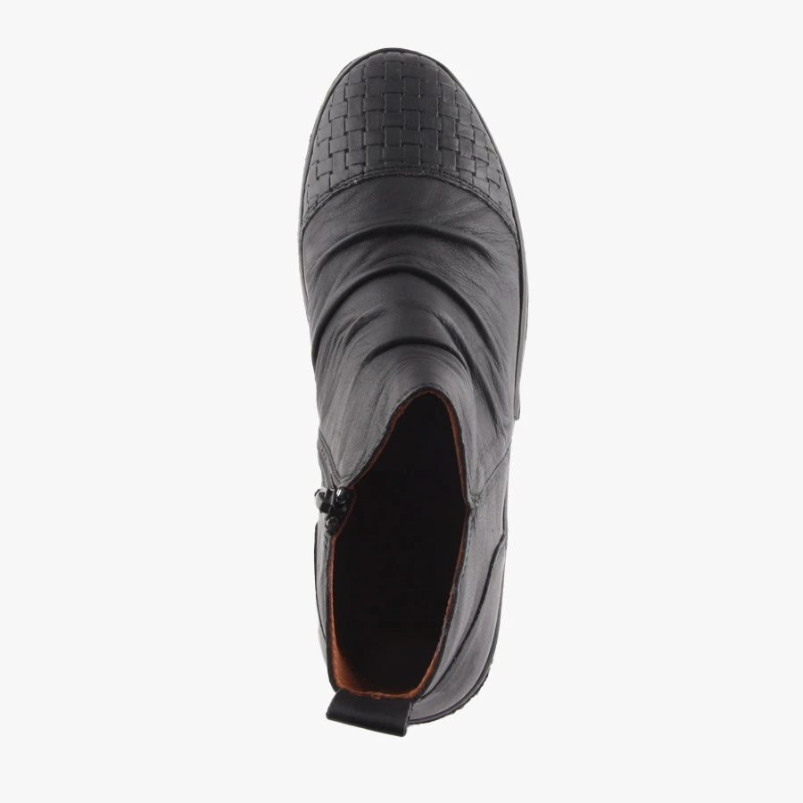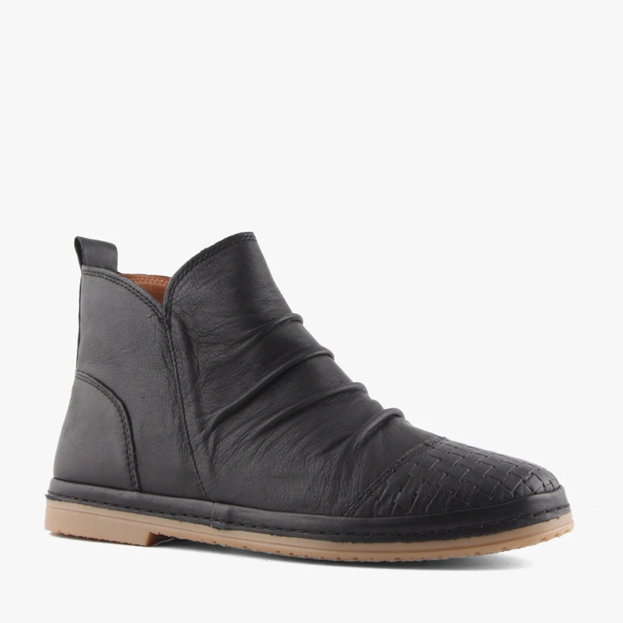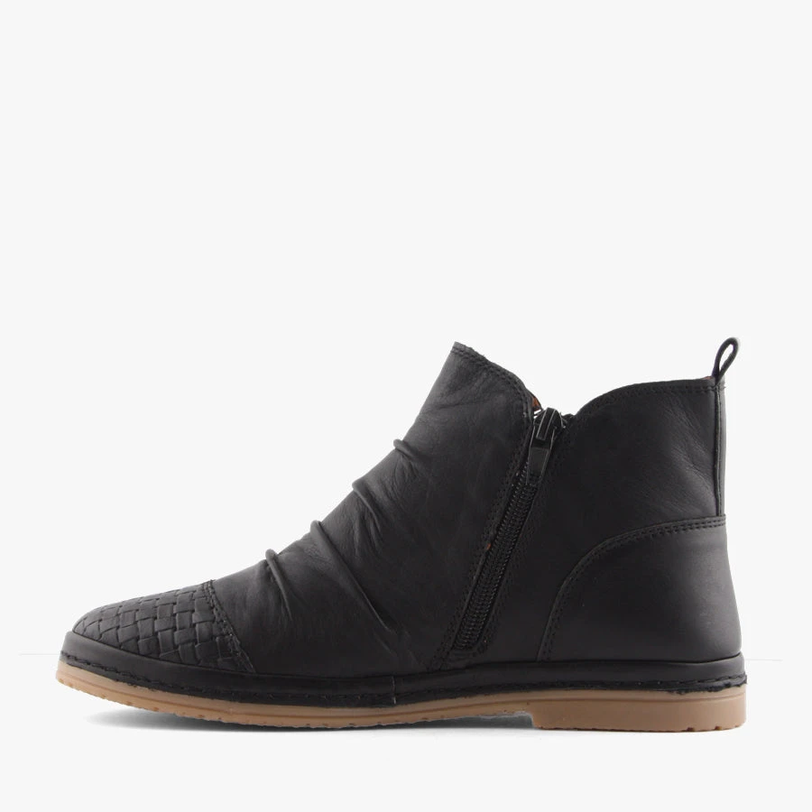 Bonnie by Donna Style is a women’s flat boot that features an incredibly soft leather upper, inner zip for easy wear and a woven toe detail.