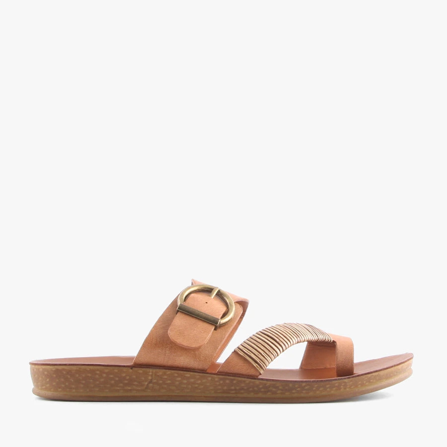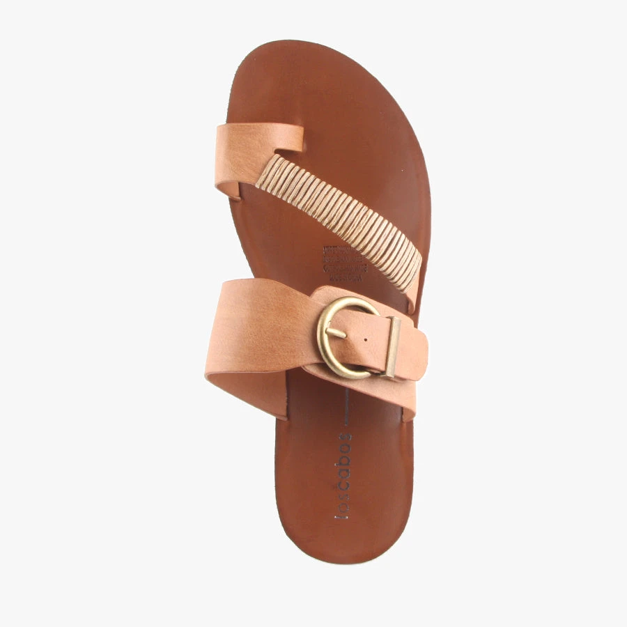Slip into summer in Bria by Los Cabos. This casual women’s sandal features a buckled strap and wrap over embellishment.