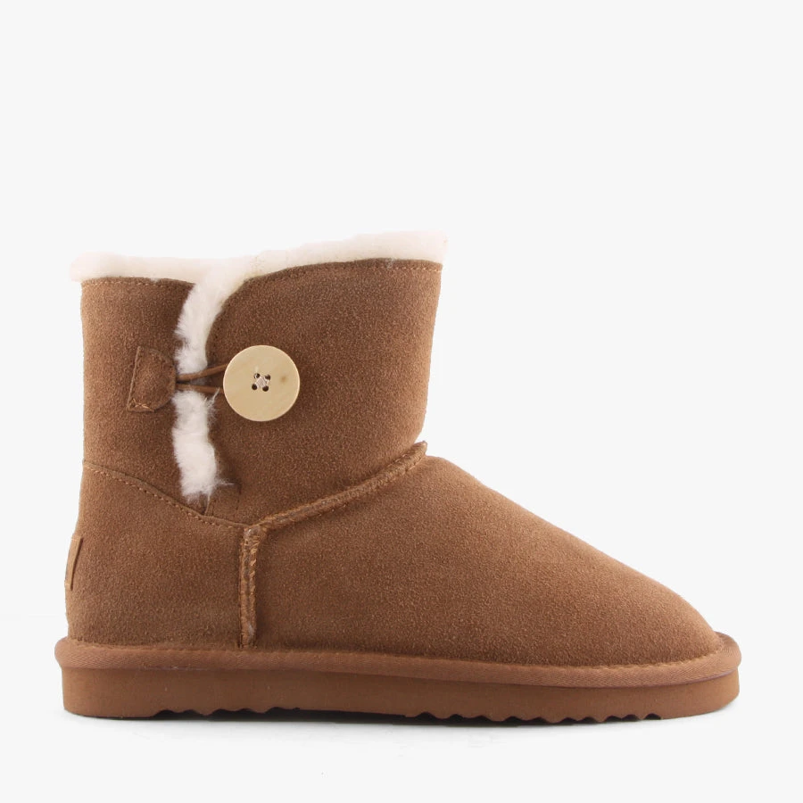 Get comfy with Button Ugg by Grosby. This women’s ugg boot features a leather upper with sheepskin lining detailed with button trim.