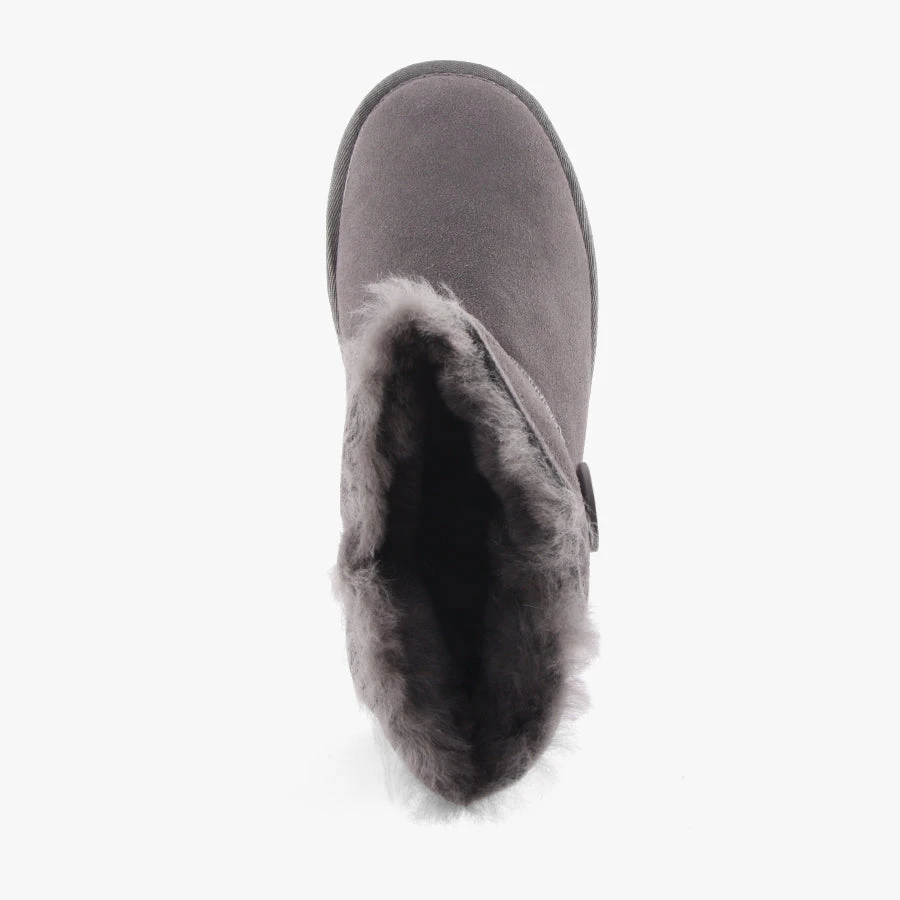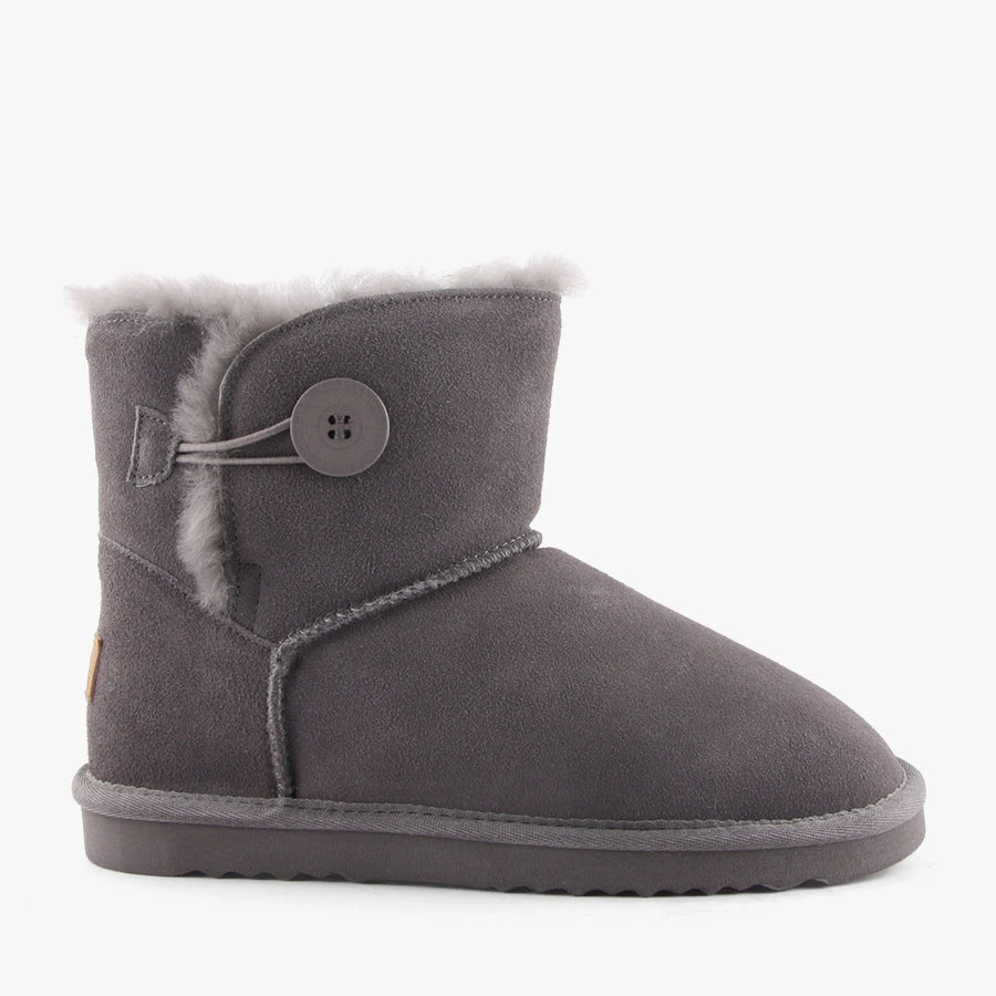 Get comfy with Button Ugg by Grosby. This women’s ugg boot features a leather upper with sheepskin lining detailed with button trim.