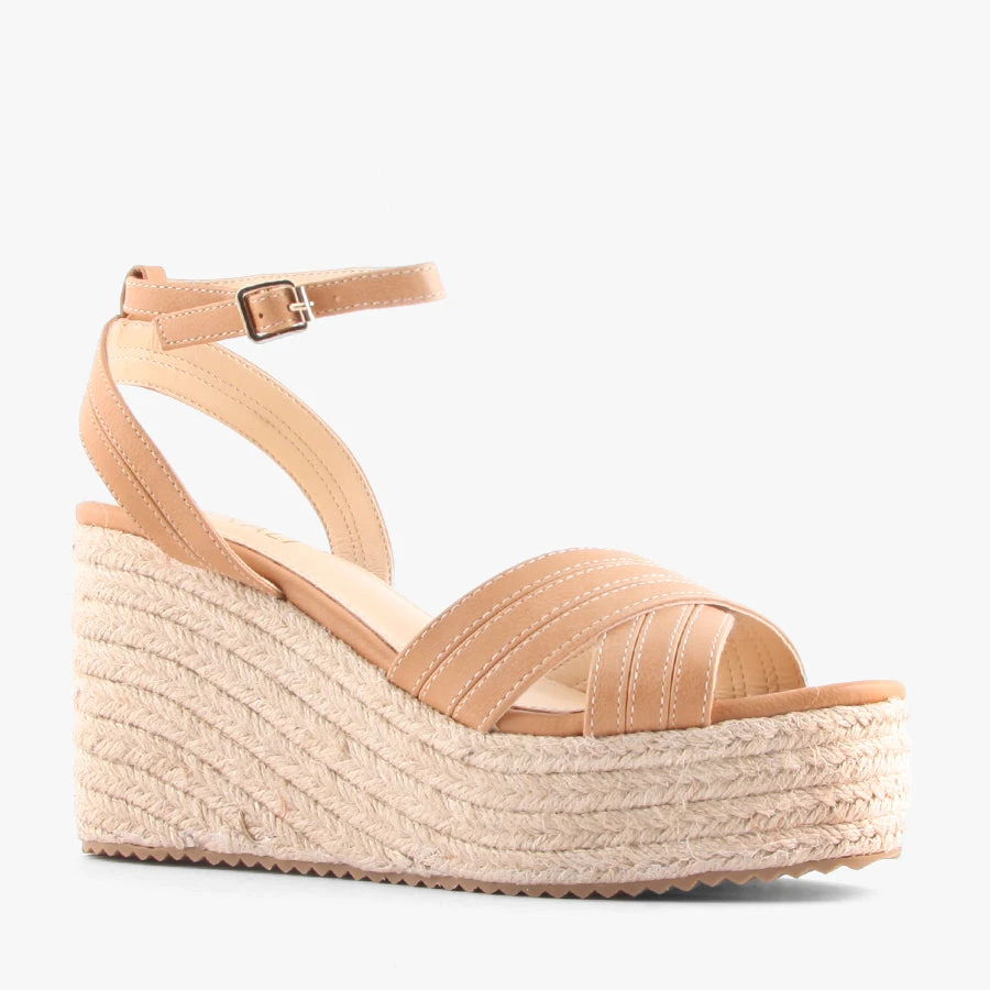 Callie by Verali is a women’s espadrille wedge that is sure to impress. Callie features a cross strap design and a buckled ankle strap set on a platform sole.
