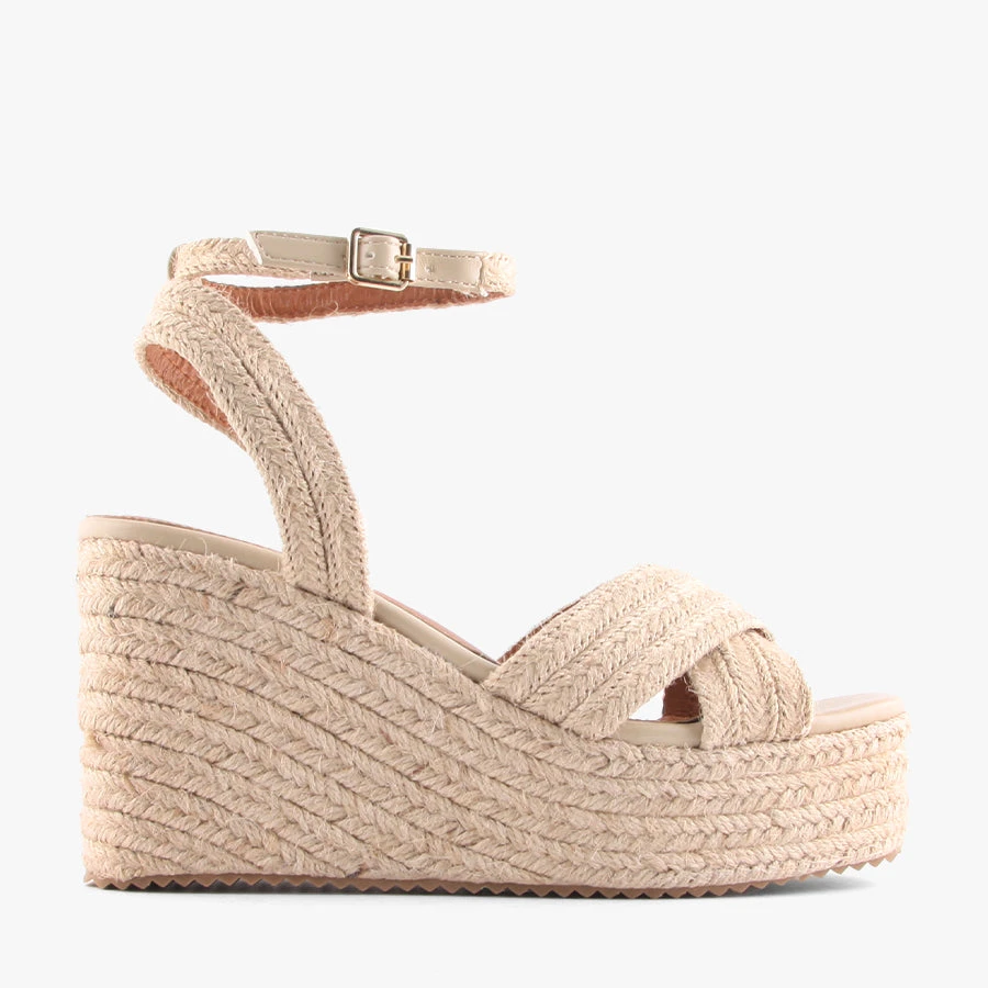 Callie by Verali is a women’s espadrille wedge that is sure to impress. Callie features a cross strap design and a buckled ankle strap set on a platform sole.