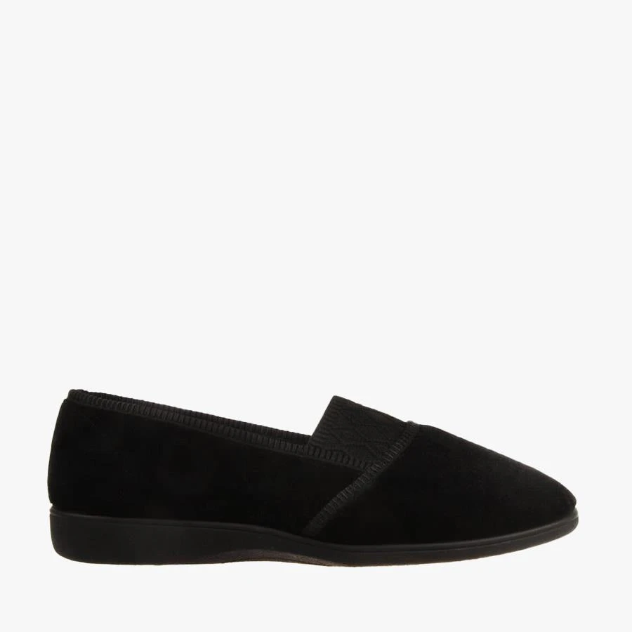 Candy by Grosby is a women’s slipper featuring a soft plush upper and a wide elastic panel across the tongue for ease.