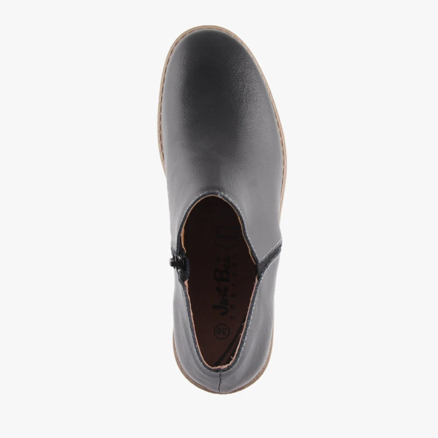 Carmy by Just Bee is a women’s ankle boot that features a lightweight sole, soft leather upper and side zip for easy wear.