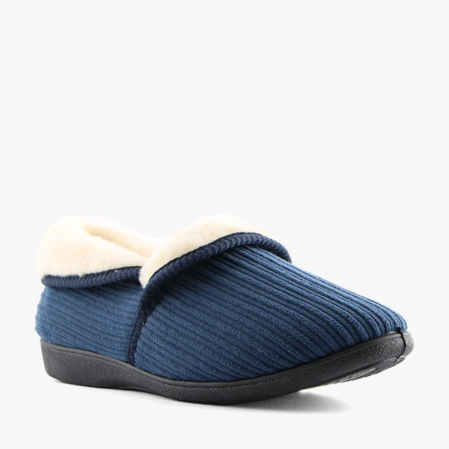 Catherine by Grosby is a women’s slipper with a faux-wool lining. Catherine features a high cut back with a folded edge and a ribbed suede upper.