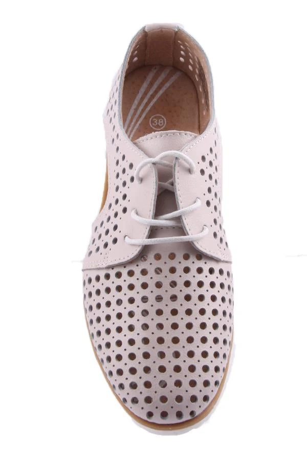 Cayenne by Just Bee is a women’s lace up leisure shoe featuring a perforated leather upper with cut out sides finished with a leather lining.