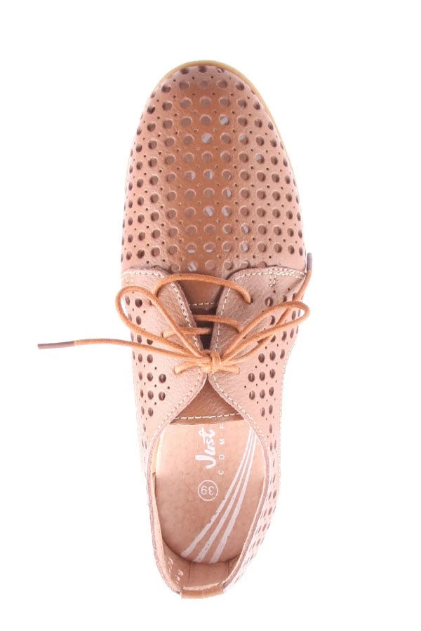 Cayenne by Just Bee is a women’s lace up leisure shoe featuring a perforated leather upper with cut out sides finished with a leather lining.