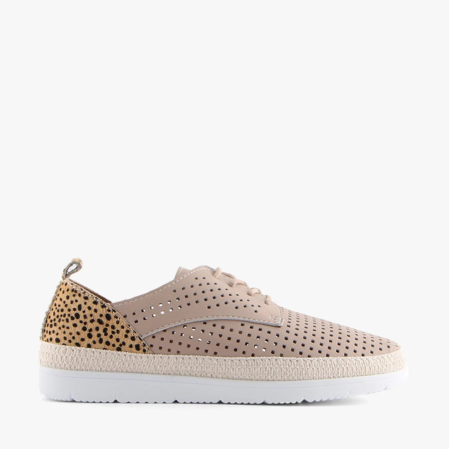 Crope by Cherry is an ultra lightweight women’s sneaker that features a padded removable insole, leopard print heel panel and woven trim around the sole. Crope has a perforated leather upper that allows the foot to breathe making it perfect for everyday wear.