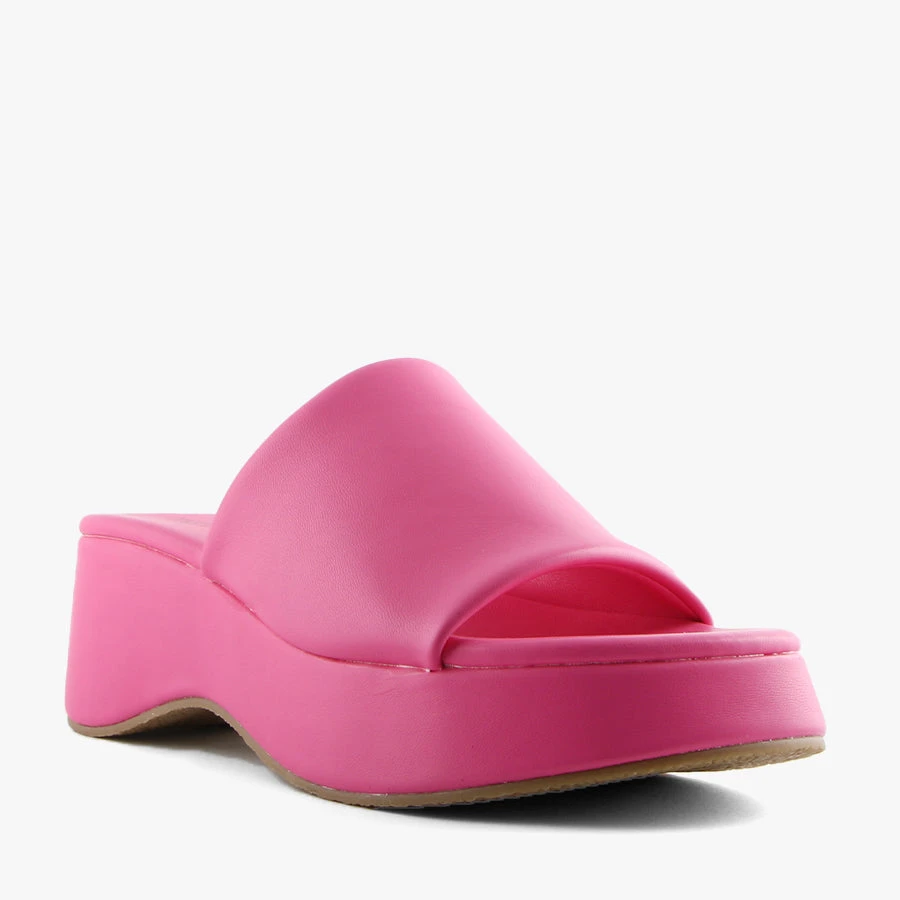 Cindy by Therapy is a vibrant chunky platform, featuring a rounded toe, padded sole and a soft stretch non-leather upper.