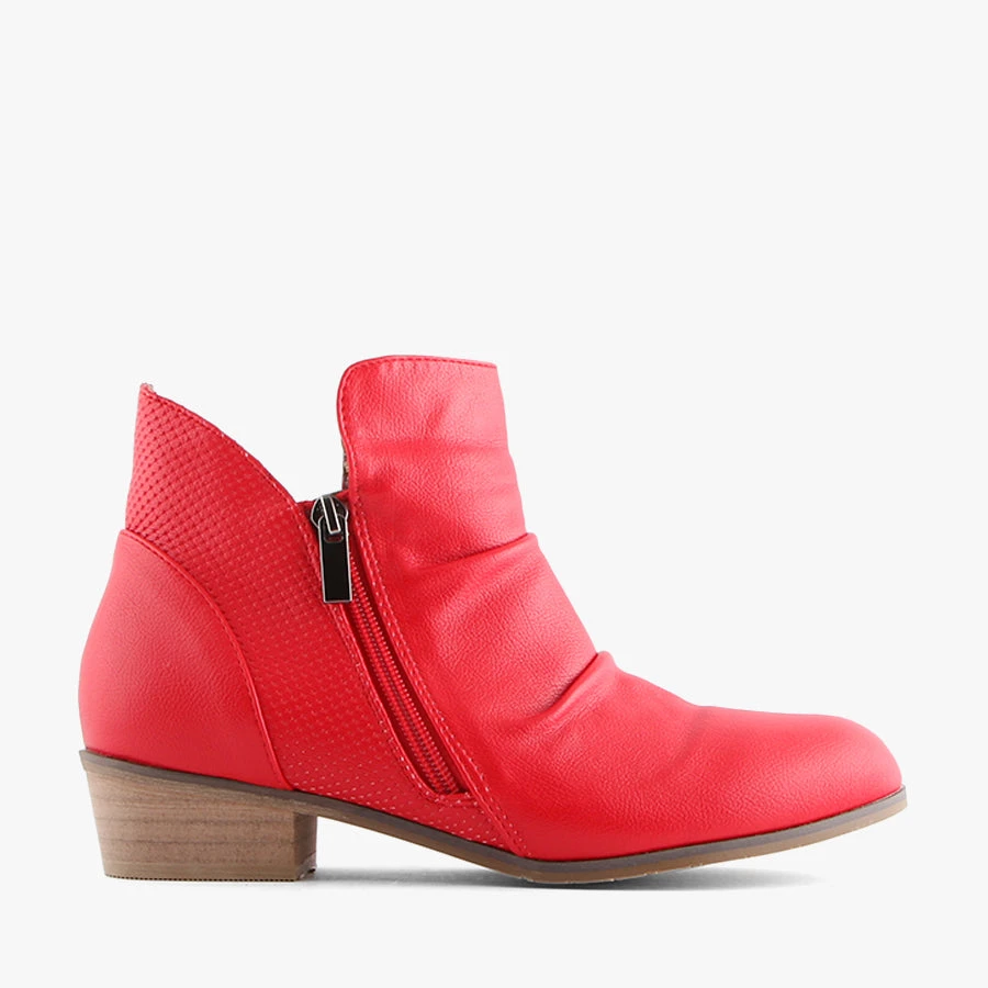 Craven by Step On Air is a woman’s ankle boot that features a low heel, textured panel and dual zips for easy wear.