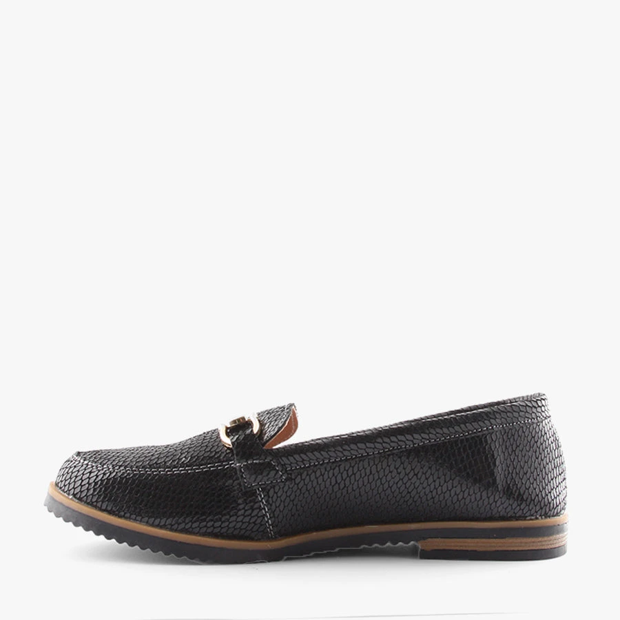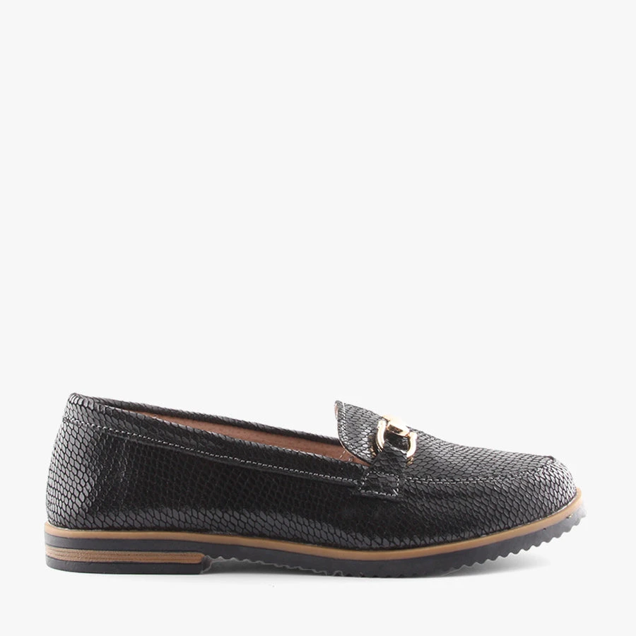 Cressy by Just Bee classic leather loafer with round toe, padded footbed and finished with a gold-tone snaffle, fit for all day comfort and style.