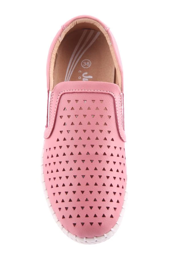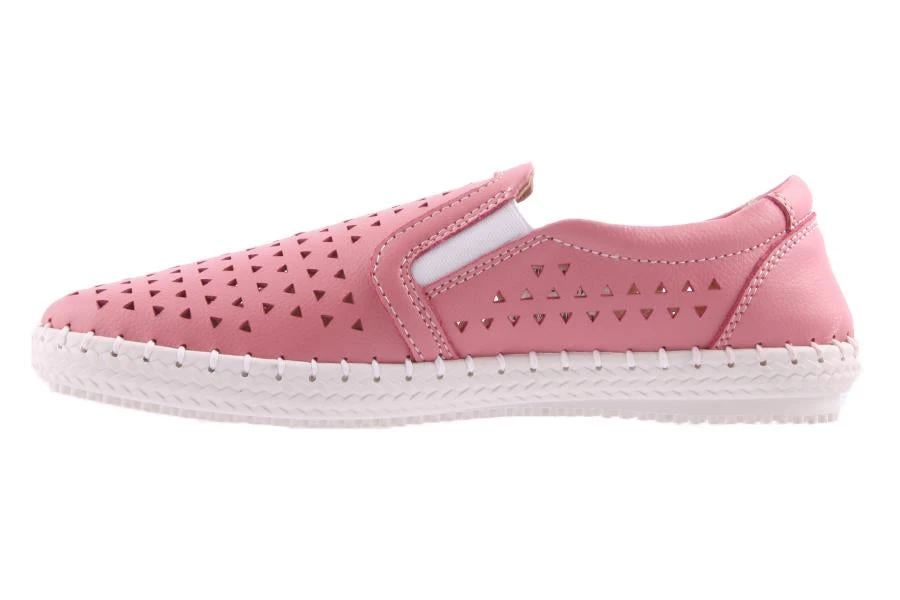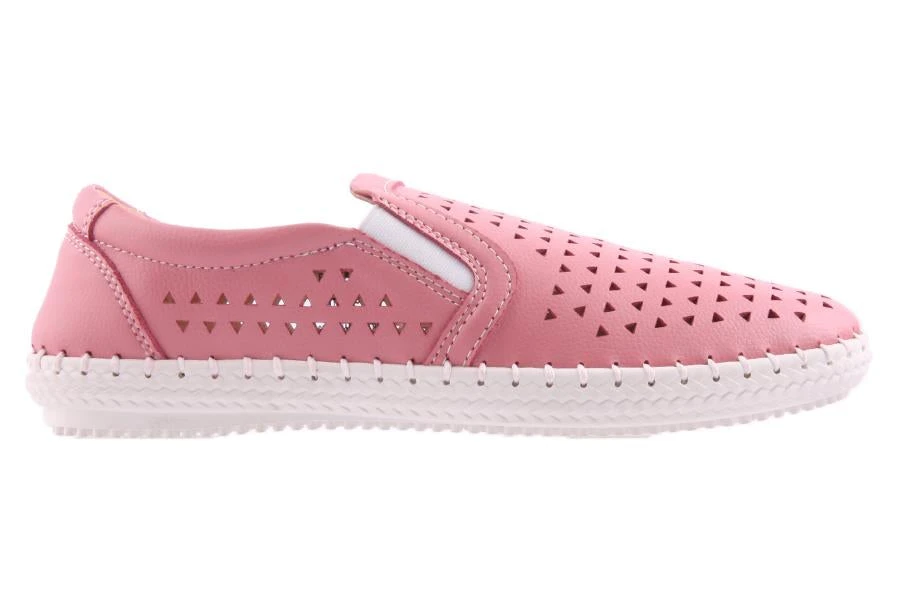 Crimson by Just Bee is a women’s sip on sneaker featuring a leather upper with triangle cut outs and elastic sides finished with a leather lining.