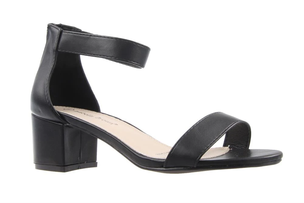You can’t go wrong with the classic Edda by Isabella Brown. This women’s low block heel features a strap over the toes and around the ankle finished with a zippered back.