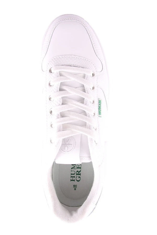 Emy by Human Green is a women’s lace up sneaker. Emy features a removable memory foam insole, a light weight sole and is made of recycled leather.