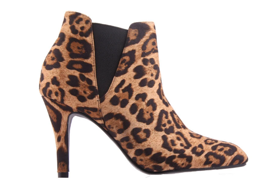 Extreme by No! Shoes is a women’s ankle boot featuring a microsuede upper with triangular elastic side gussets finished with a pointed to and stiletto heel.