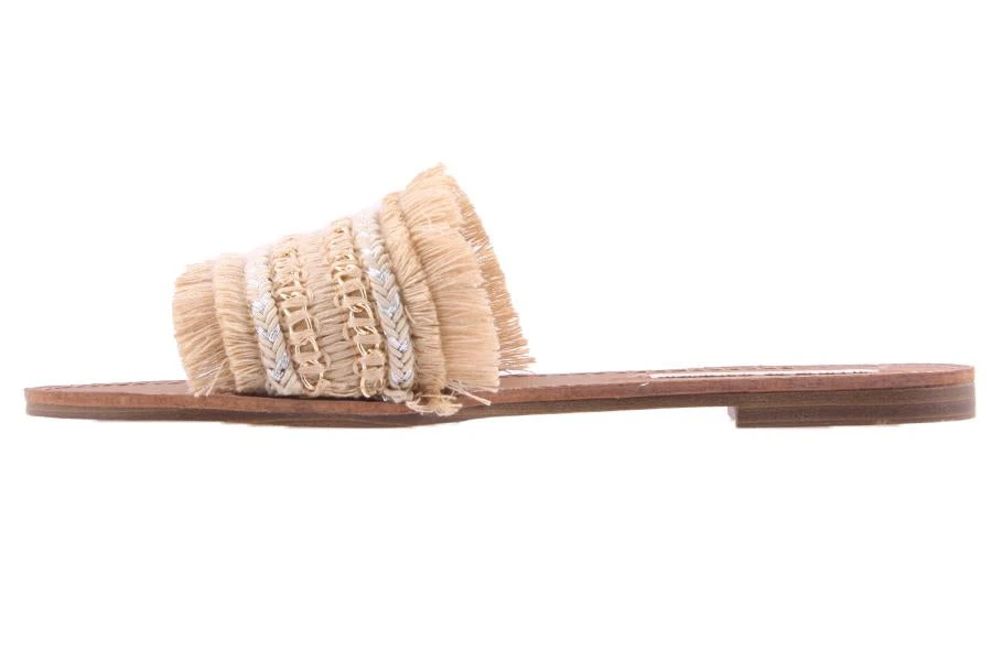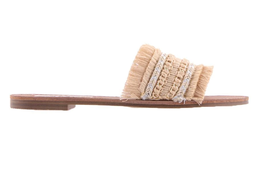 Have fun with Friney by Pied A Terre. This women’s slide features a strap embellished with chain and fringe detail.