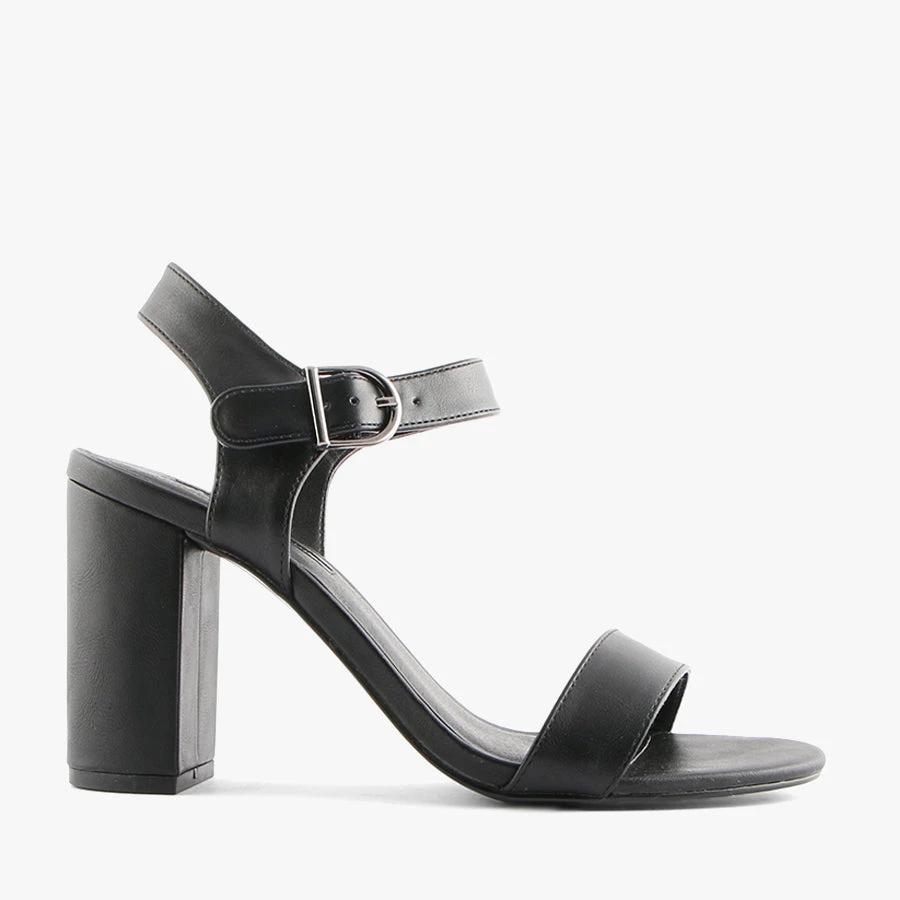 Haimie by London Rebel is a women’s block heel featuring a smooth leather-look upper and a buckle strap closure.
