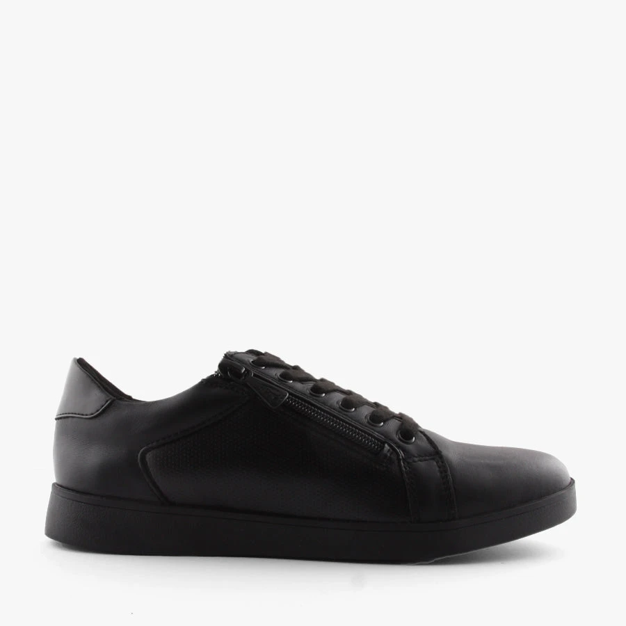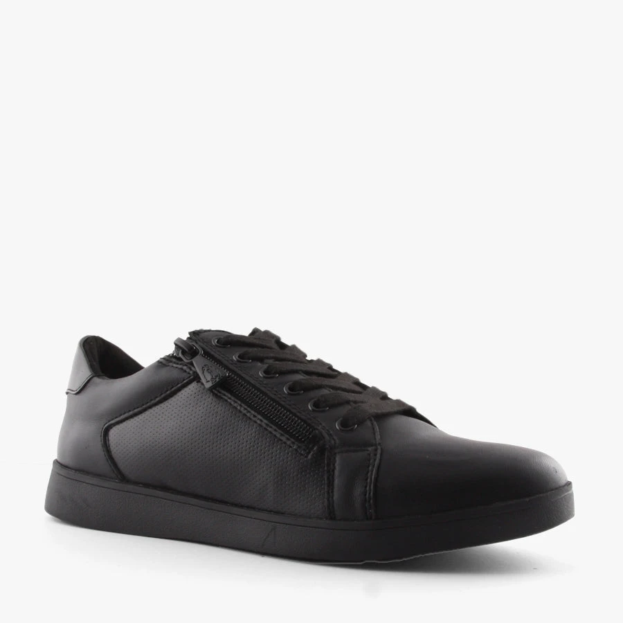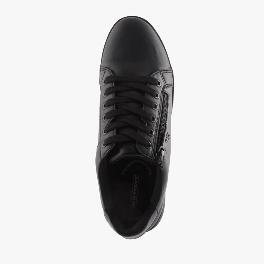 Comfort and style combine with Mimosa by Hush Puppies. These women’s on trend sneakers feature a smooth leather upper with a lace up front and side zipper entry finished with a removable padded insole.