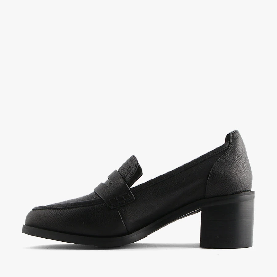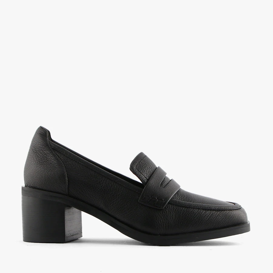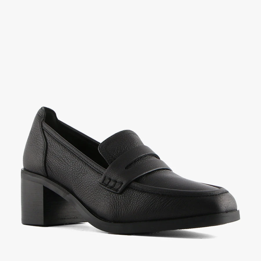 Savior by Hush Puppies is a women’s loafer that features a block heel, padded insole, and an ultra soft leather upper.