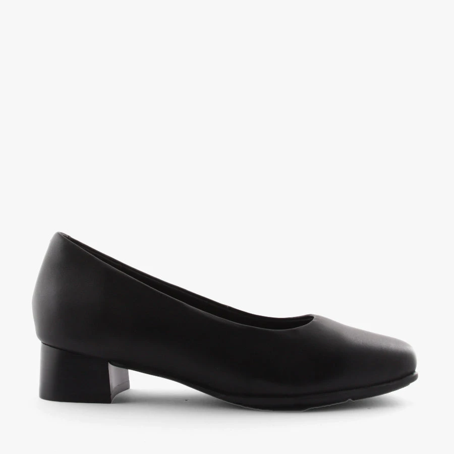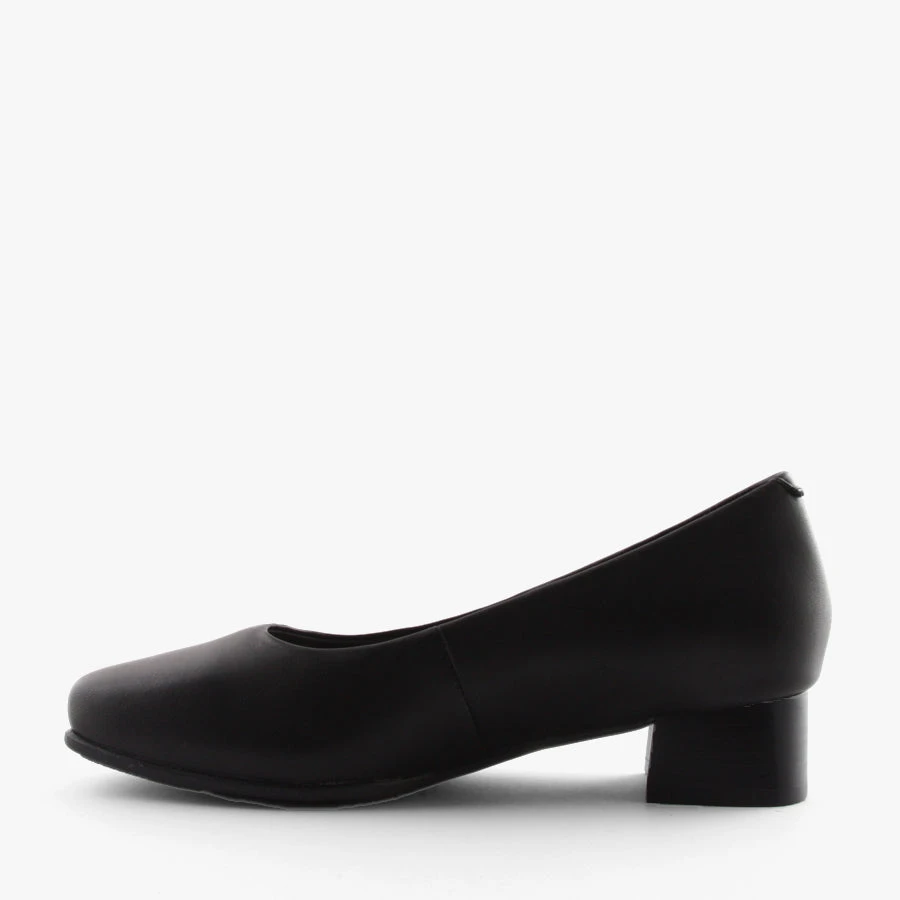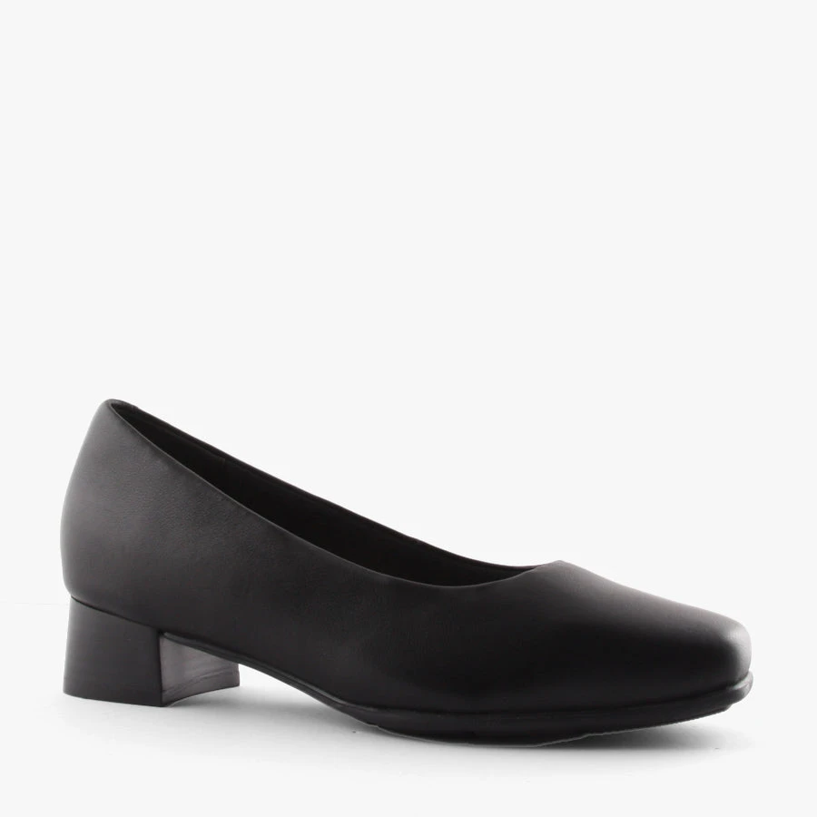 The Low Square by Hush Puppies is a woman’s court shoe featuring a comfortable block heel, padded removable insole and soft leather upper.