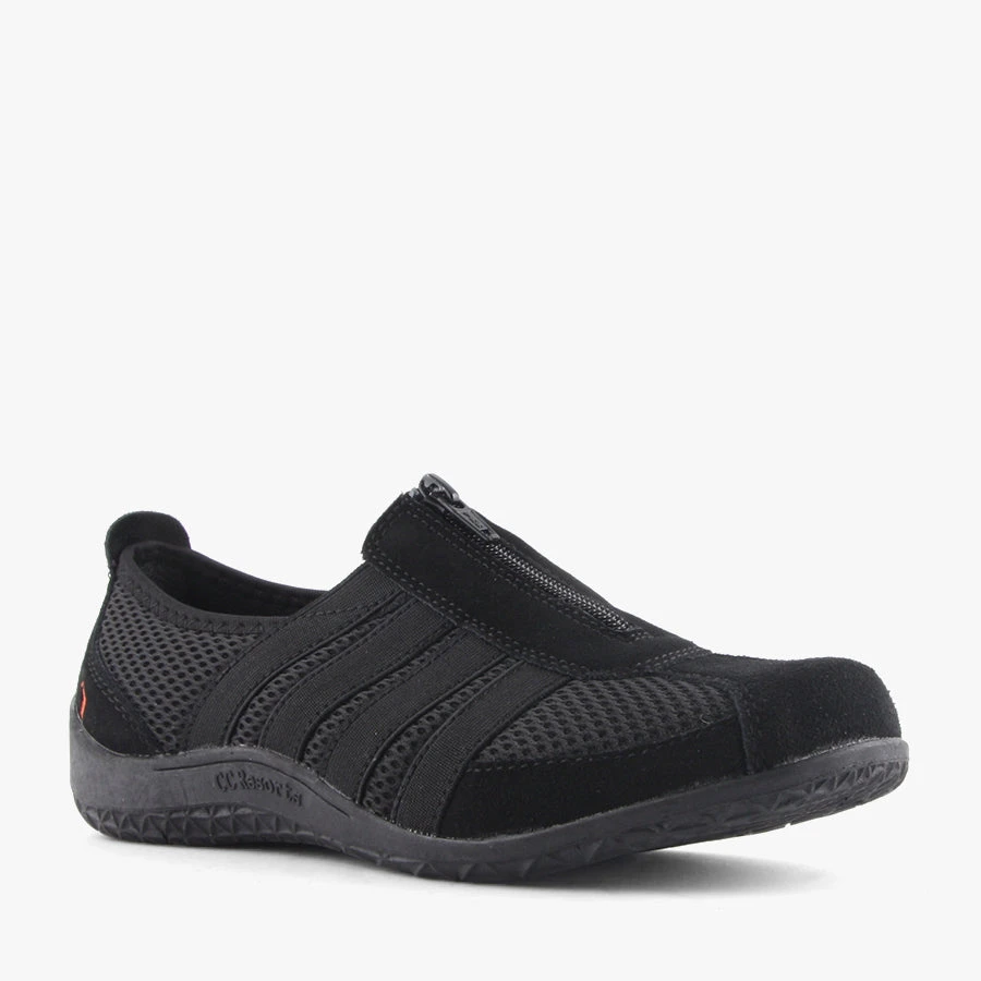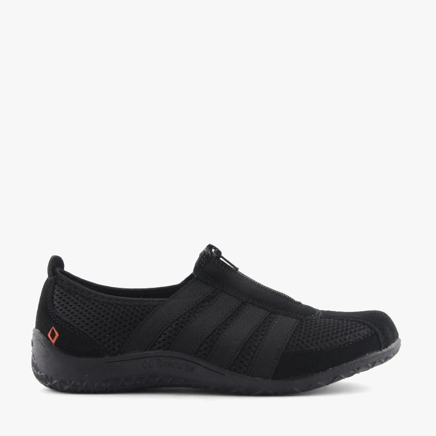 Slip into the sporty leisure style of Jada by CC Resorts. This women’s shoe features a breathable mesh with elastic overlays finished with a zip closure and removable padded insole.