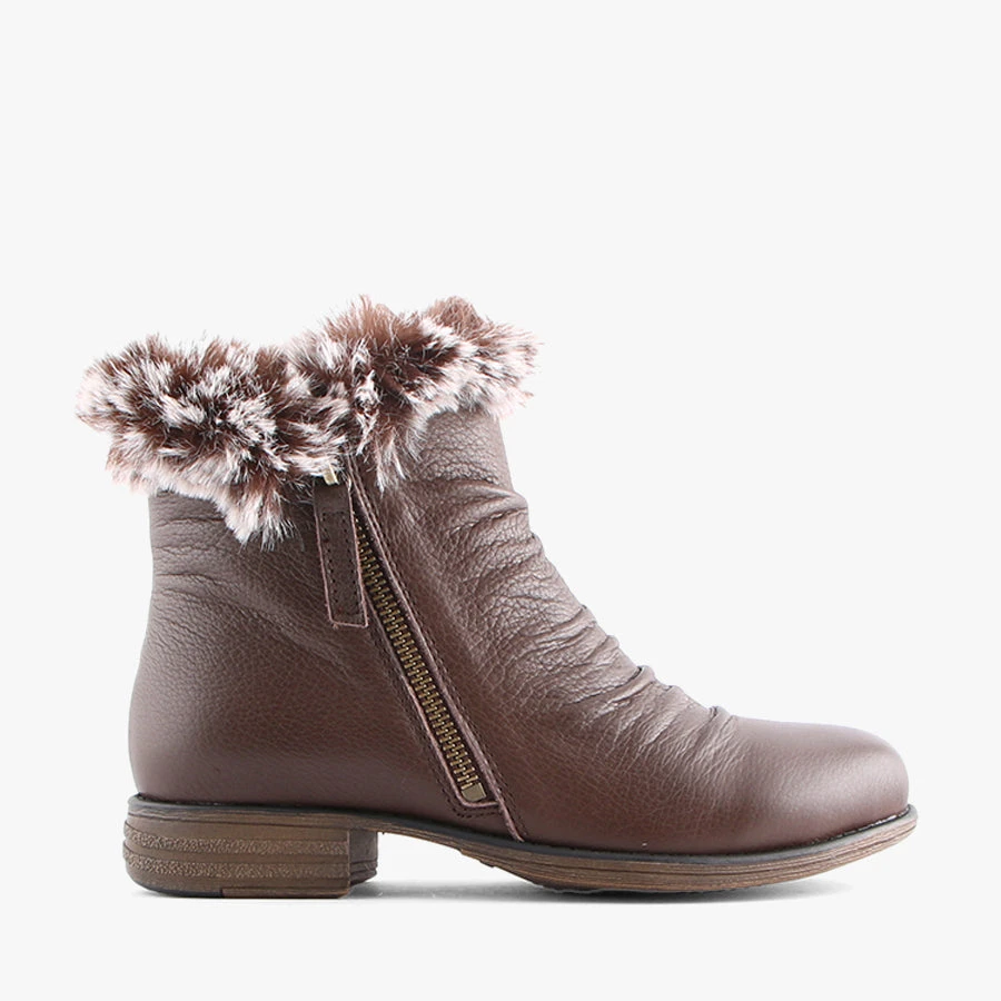 Jansen by Natural Comfort is a women’s boot that features dual functioning zips, soft micro suede lining and a statement faux fur collar.