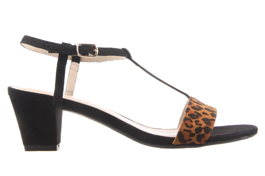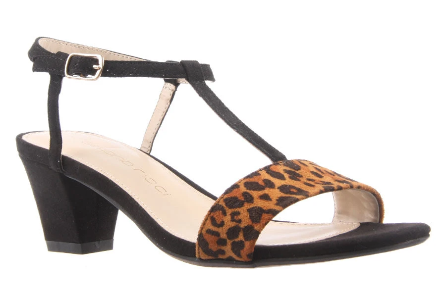 Jenna by Simona Ricci is a women’s dress sandal featuring a microsuede upper with leopard print and a low block heel. Ideal for dressing up or down.