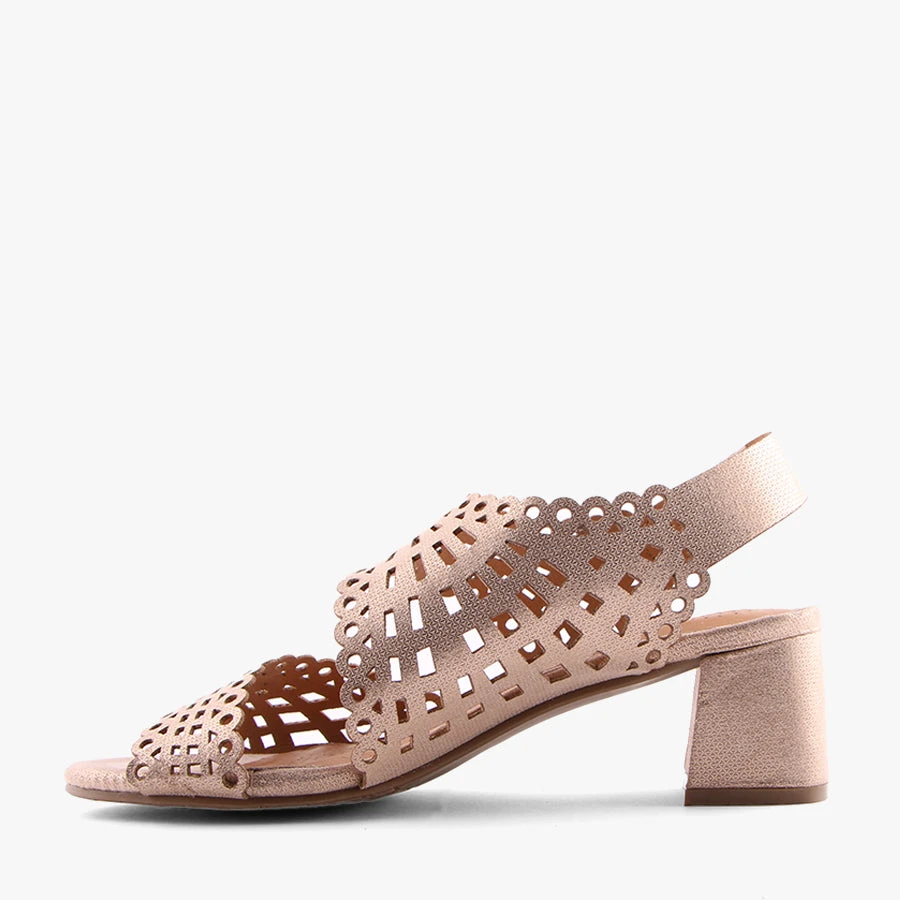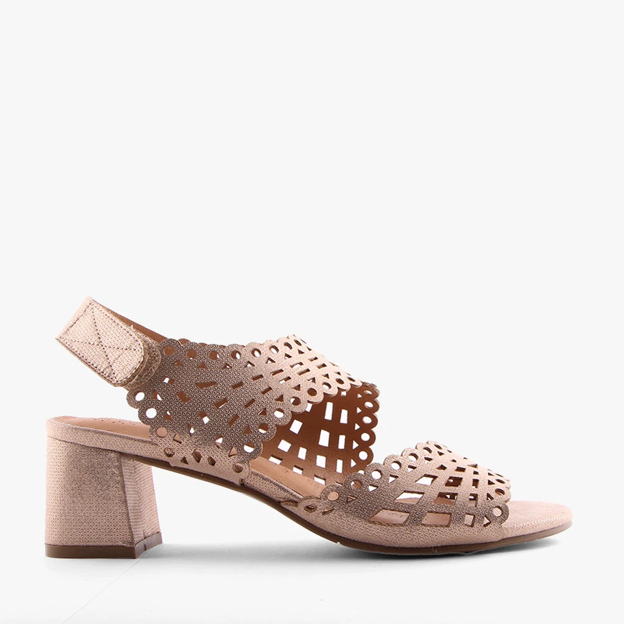 Joan by Step On Air is a block heel that features a velcro strap on the heel, padded sole and shimmer upper.