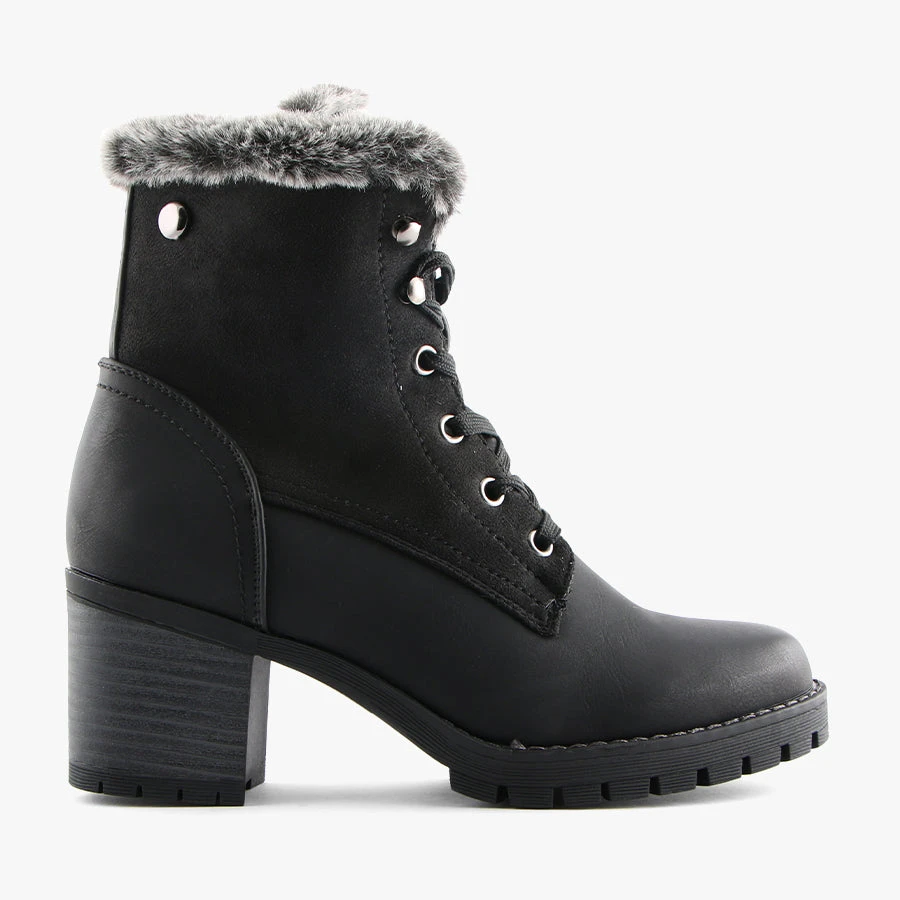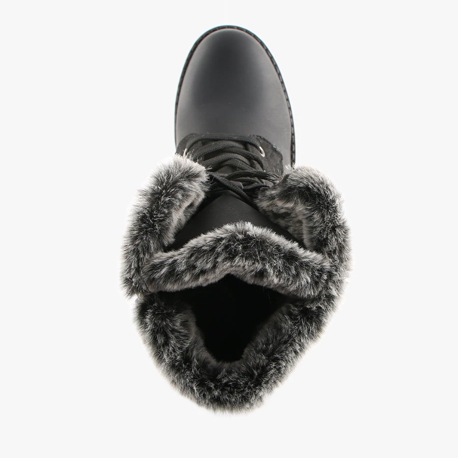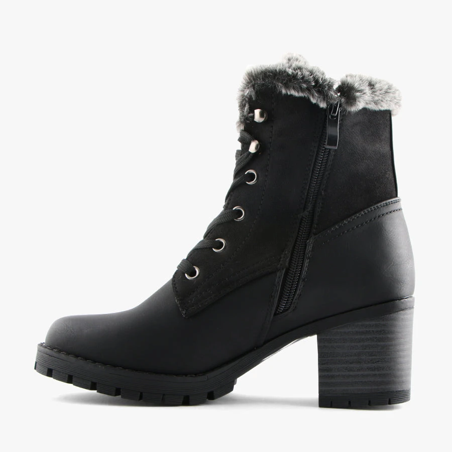 Kanaris by Bellissimo is a women’s boot that features a comfortable block heel, a lace up front with side zip and a faux fur collar.