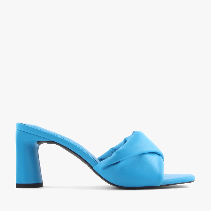 Slip into Kardi by Therapy. This fun sandal features a padded cross strap, feature heel and a smooth leather-look upper.