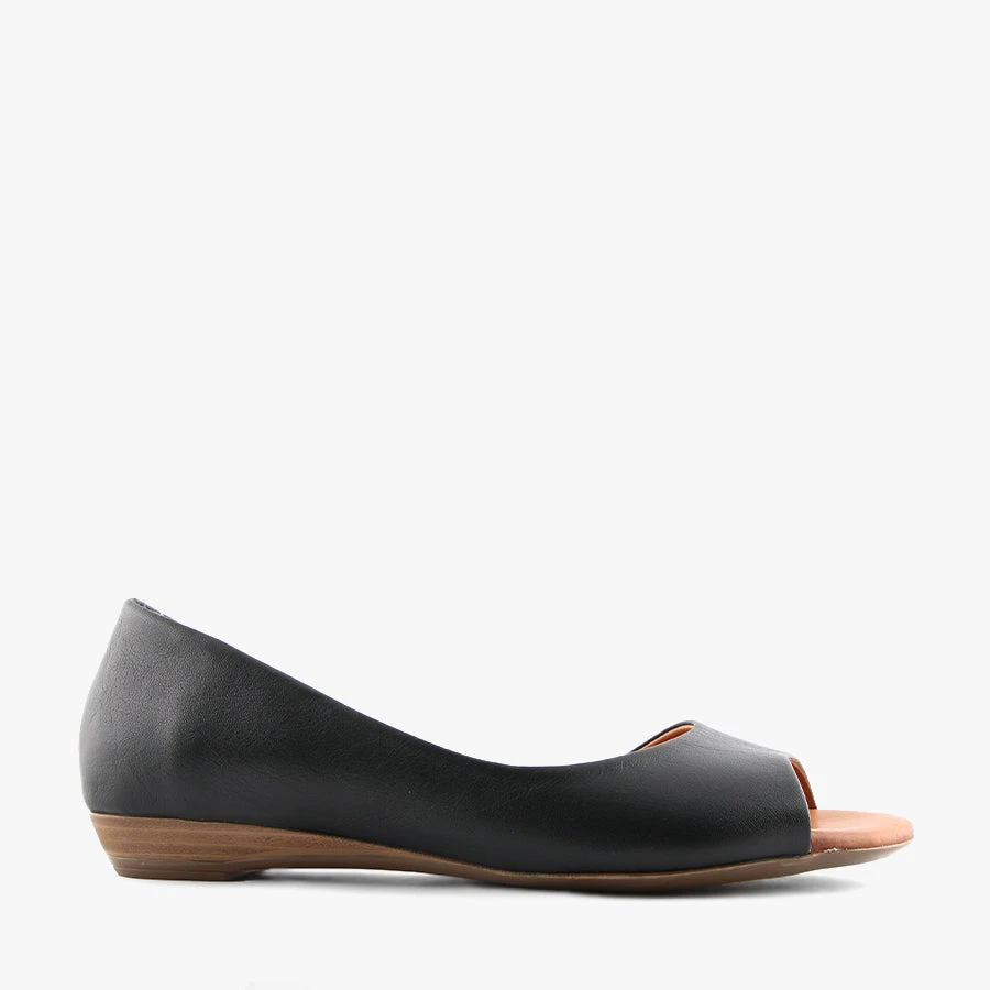 Lofarrah by Mago is a smart women’s flat that features a soft leather upper and a peep toe design.
