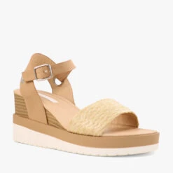 Luella by Pied A Terre is platform wedge featuring thick straps with an eyelet design, multicoloured layered wedge, and adjustable ankle buckle. This wedge adds a fun twist and extra detail to any casual summer outfit.