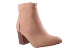 Luisa by Pied A Terre is a women’s ankle boot featuring a smooth upper detailed with piping trim and a metallic side zipper on a stacked heel.