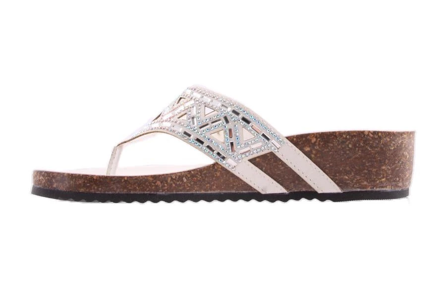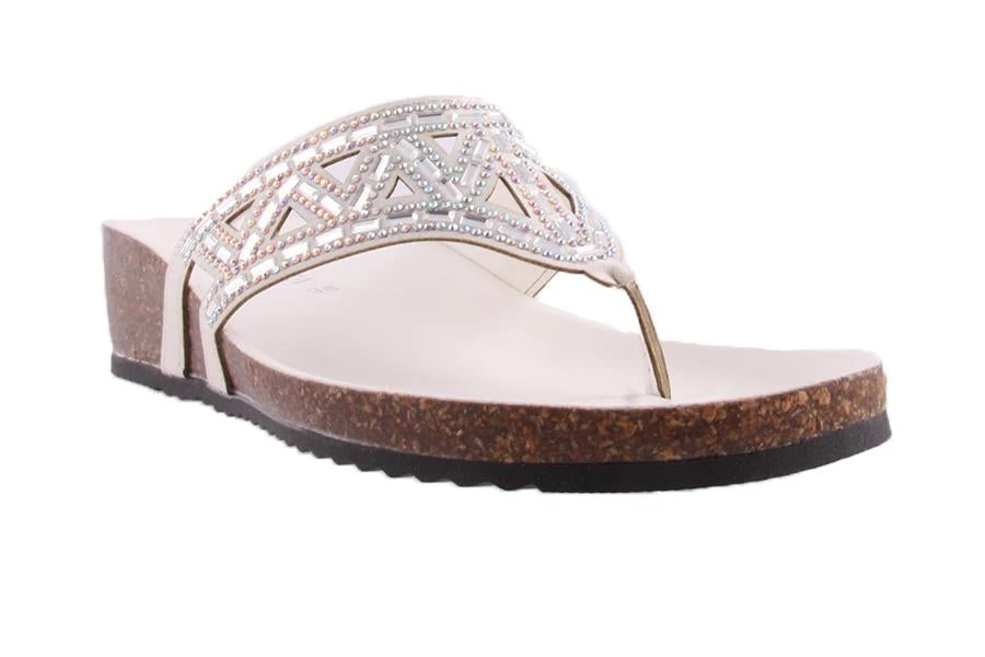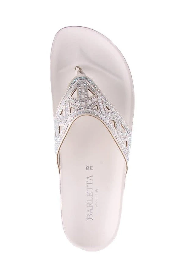 Dazzle in Lyn by Barletta. This woman’s sandal features a jewelled strip and a shaped insole on a low wedge. Made In Italy.