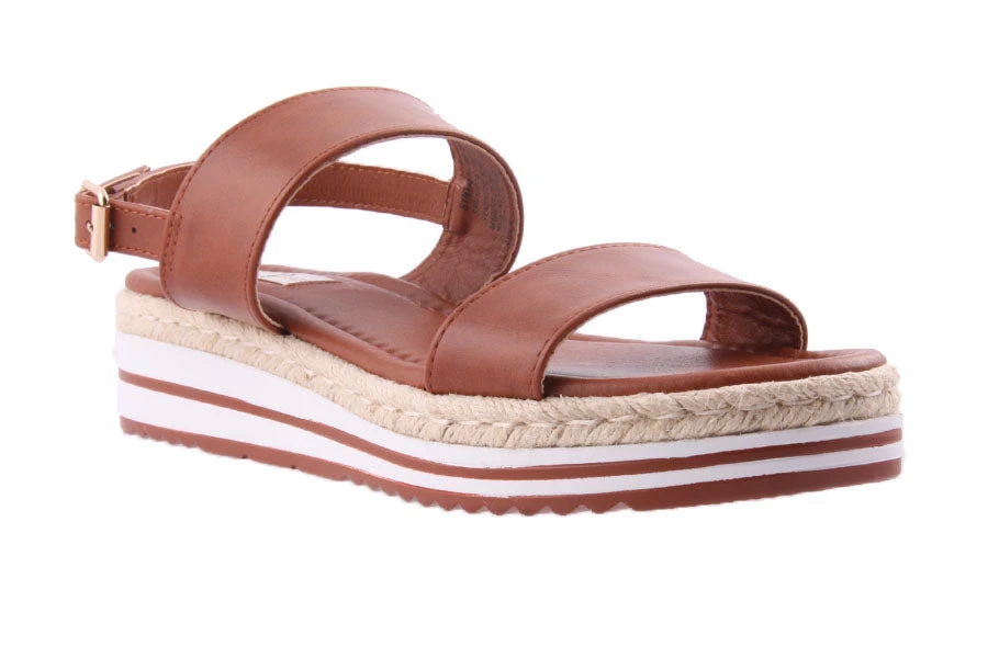 Maldives by London Rebel is a casual platform sandal featuring an espadrille trim, thick straps and a buckle fastening strap.
