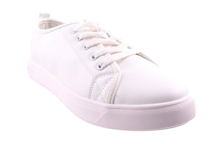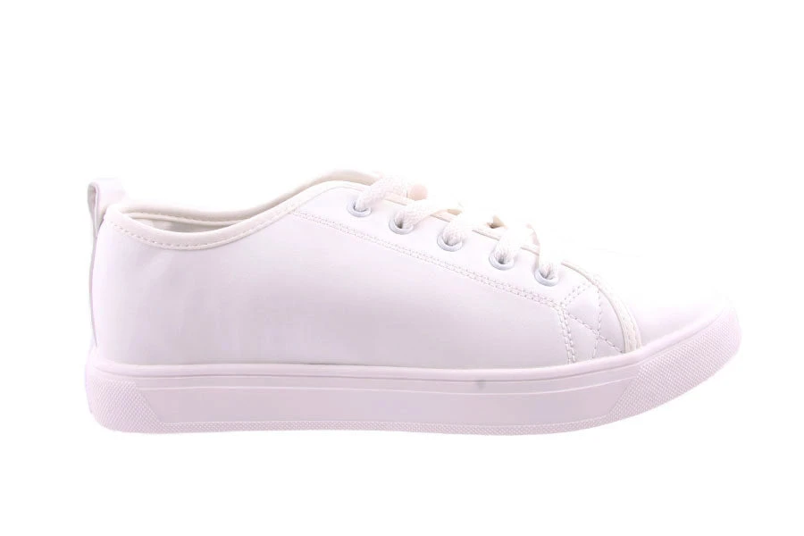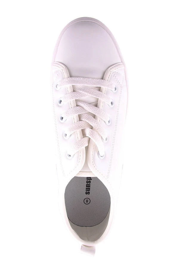 Mia by Sunsports is a light weight womans lace up sneaker featuring a removable innersole and leather look upper.