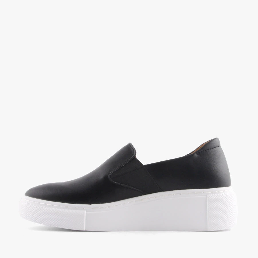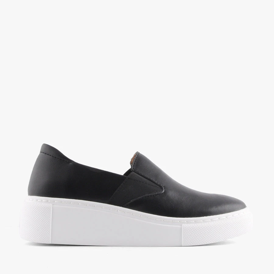 Find comfort in Mingle by Step On Air. Mingle is a simple slip on sneaker that features a low statement wedge with a soft leather upper and insole.
