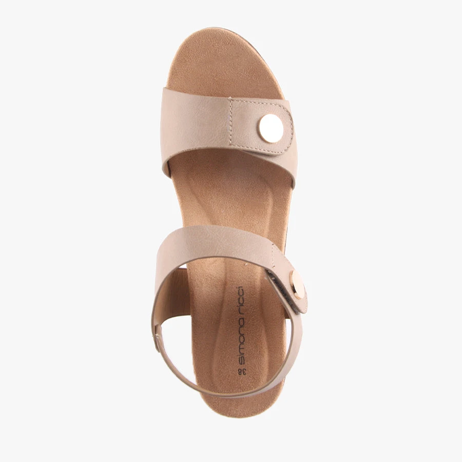 Moya by Simona Ricci is a women’s heeled sandal that features a soft padded insole, a chunky block heel and two full velcro straps for easy wear.