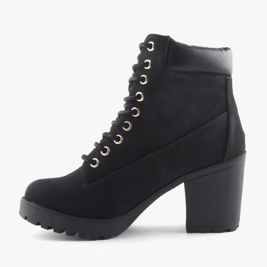 Naipalm by London Rebel is a women’s boot featuring a lace up front with a padded collar and an almond shaped toe on a block heel.