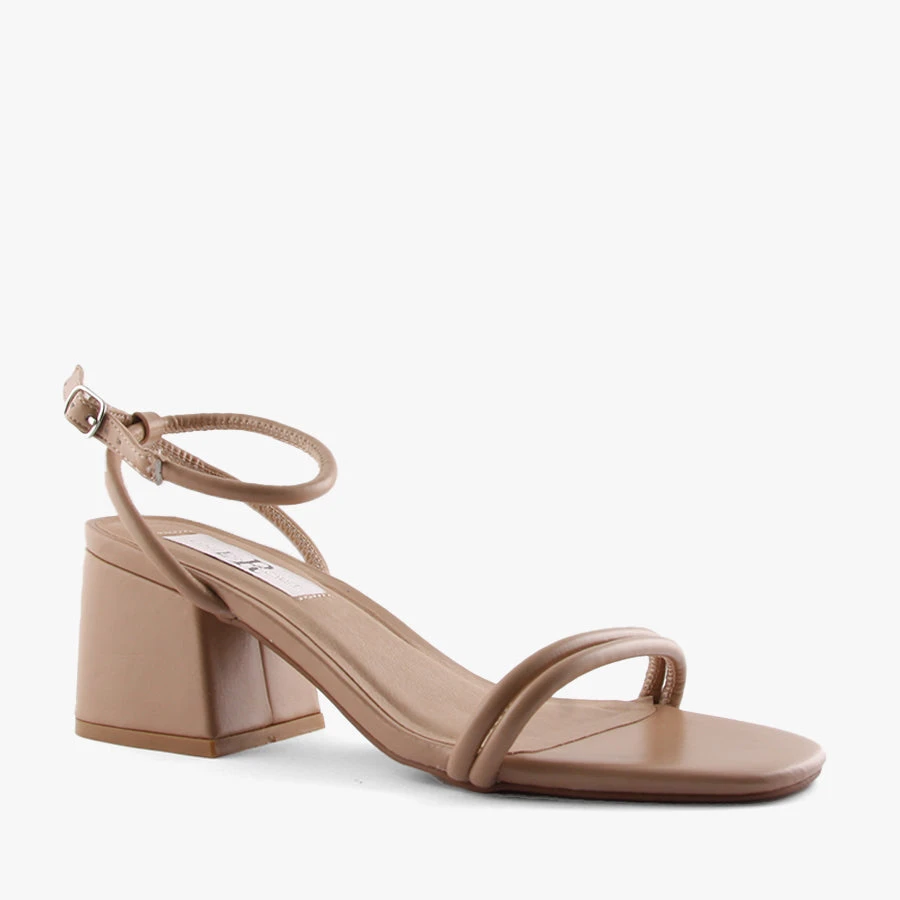 Neve by London Rebel is a strappy low heel featuring two tubular straps across the toes, and a wrap around adjustable ankle.