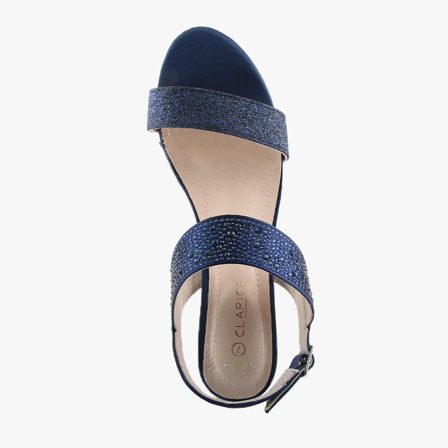 Nuke by Clarice is a dress sandal that will add a little glamour to any outfit. Nuke features a buckled ankle strap and a smart satin upper with diamante embellishments.