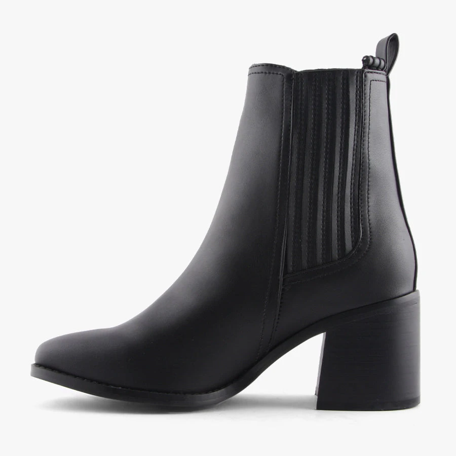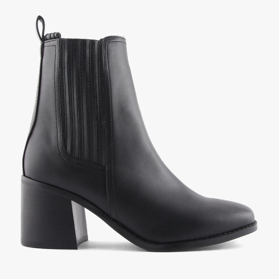 Ophelia by Therapy is a women’s dress boot that features an almond shaped toe, comfortable block heel and side gussets for easy wear.