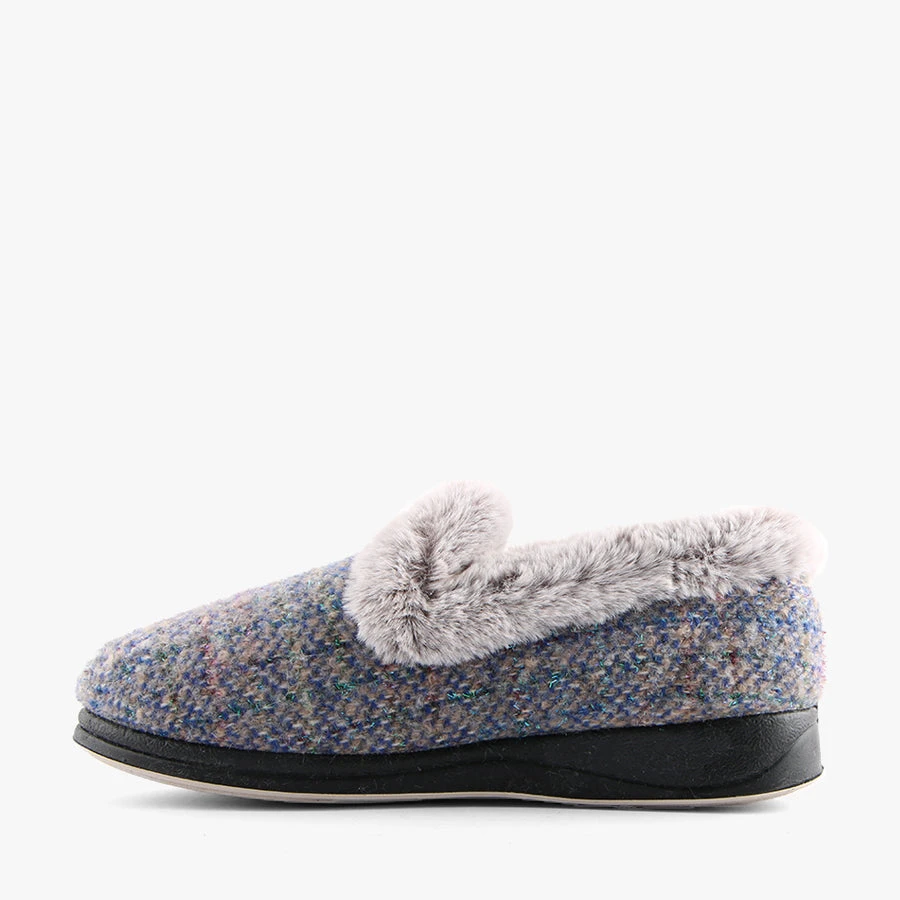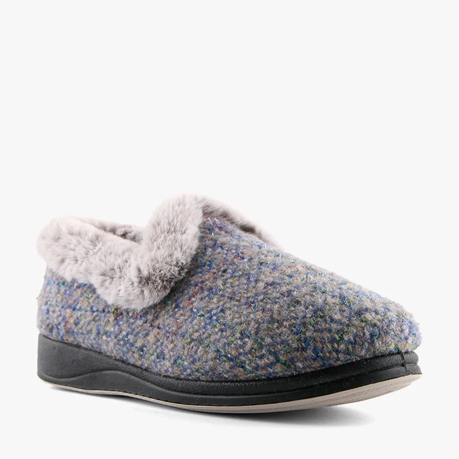 Emille by Panda is a women’s slipper that features a soft faux fur lining and cushioned sole. All Panda slipper feature a non-marking rubber outsole.