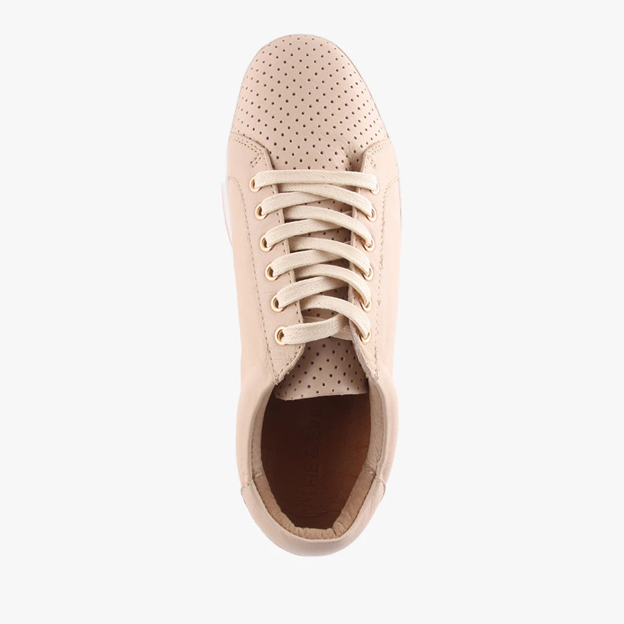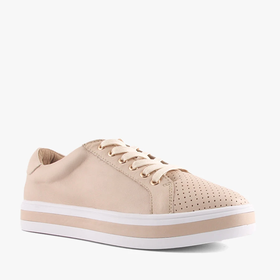 Paradise by Alfie And Evie is a simple womens lace up sneaker featuring a perforated centre panel, platform sole and gold eyelets