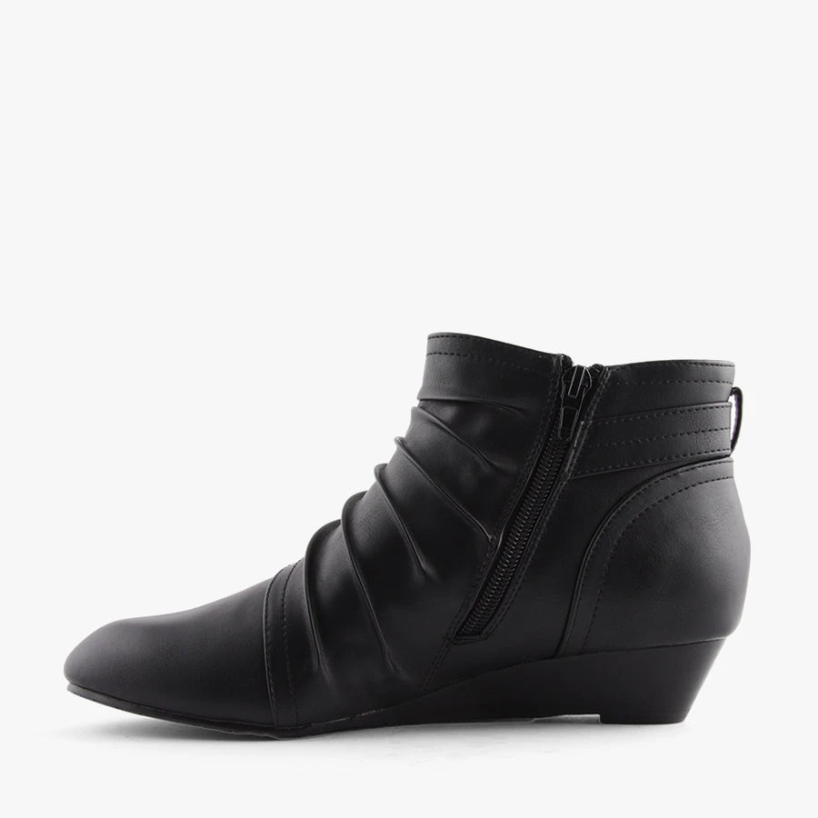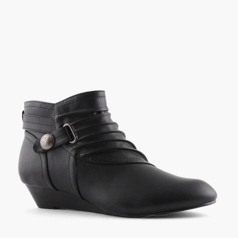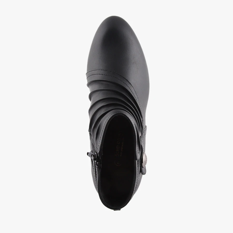 Paula by Step On Air is a women’s ankle boot that features a smart low wedge, ruche details on the front and a side zip for easy wear.
