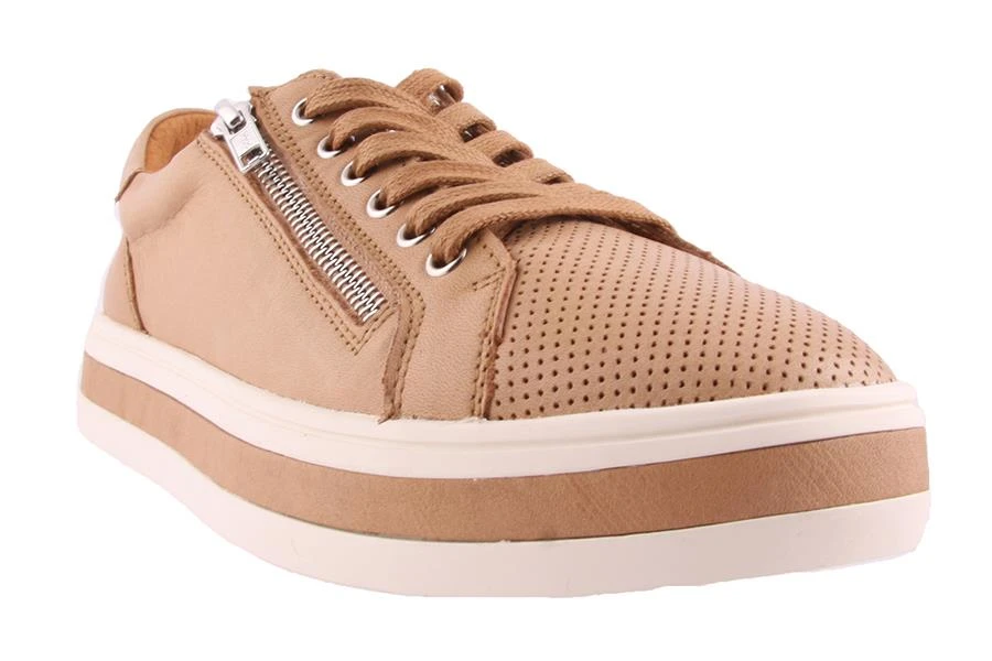 Polyanna by Alfie & Evie is a woman’s lace up sneaker that features a soft leather upper and lining, perforated toe panel and side zip for easy wear.