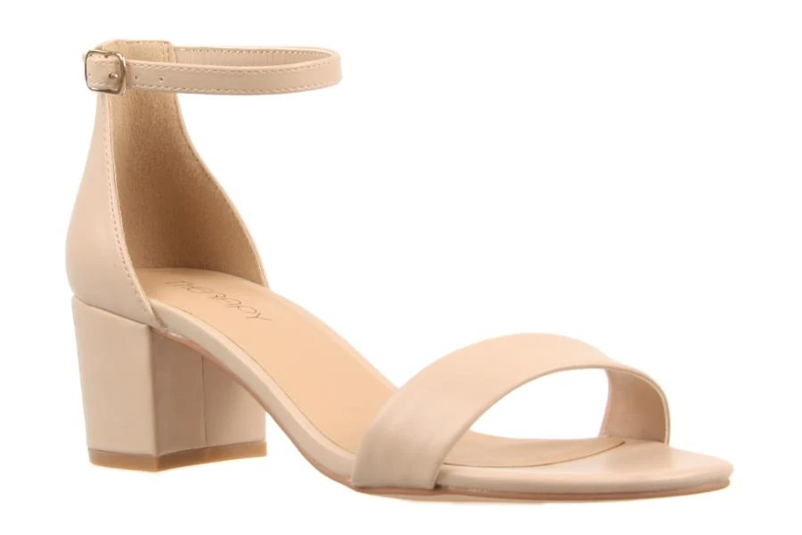 Reeves by Therapy is a women’s heel featuring a buckled ankle strap and wide strap across the toes with an enclosed heel.